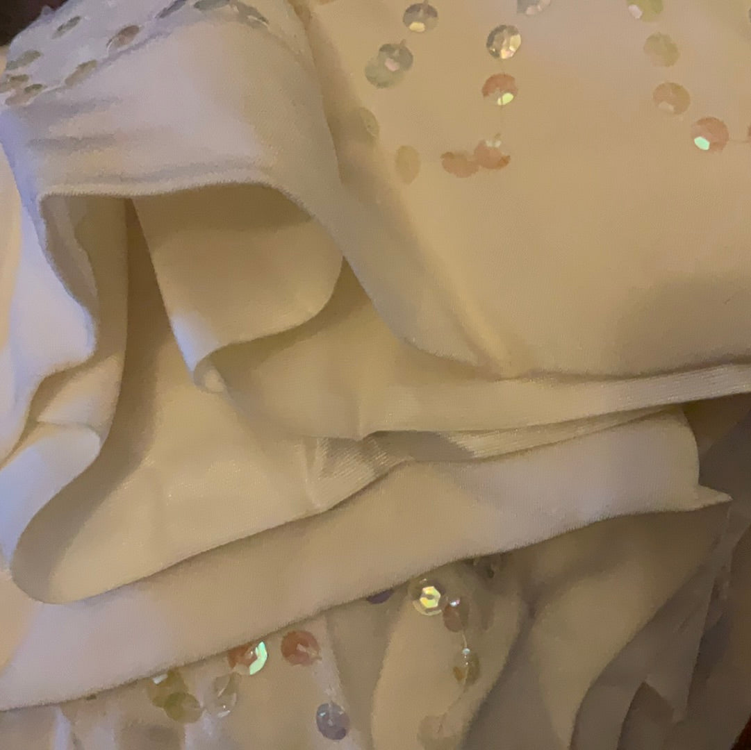 1950’s Sequin on Silk White Holographic Sequins Hand Laid Occasion Cocktail Black Tie White Party Bridal Dress