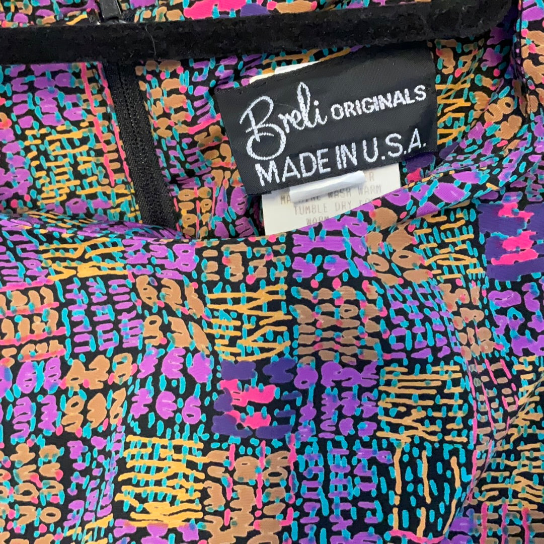 Breli Originals Pleat Skirt abstract jewel tones short sleeve dress with belt