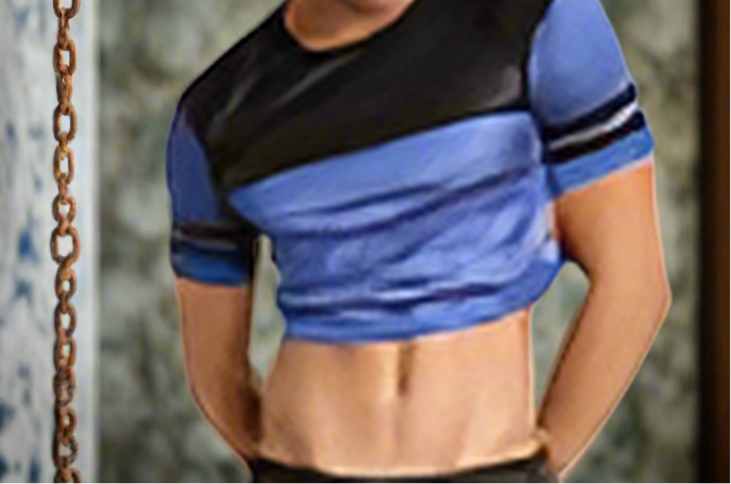 Cell Block 13 Cropped Jersey in Wet Look Black and Blue Mesh Size Medium