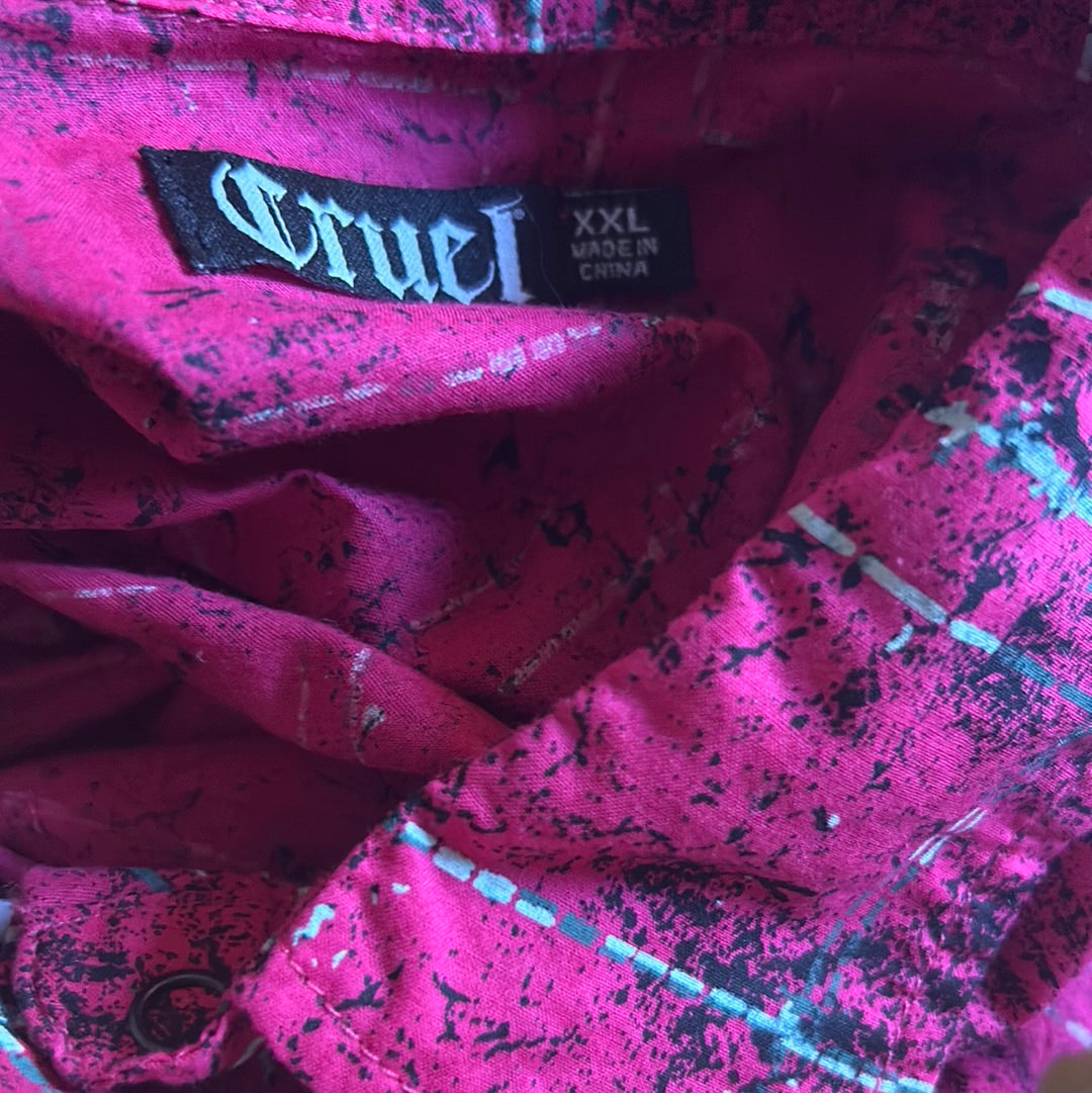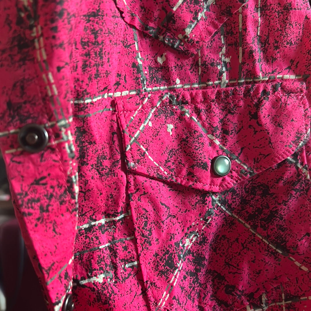 Cruel Magenta 90’s Abstract Pearl Button Up Collared Shirt XXL