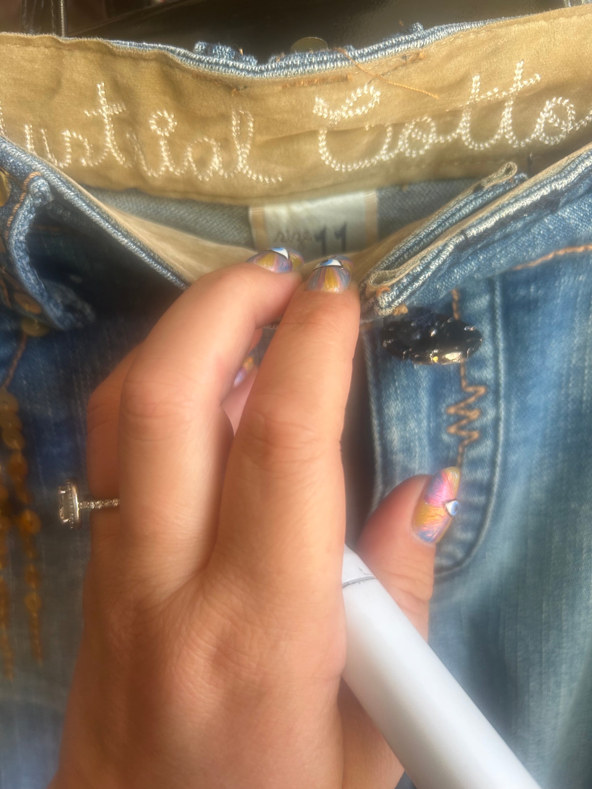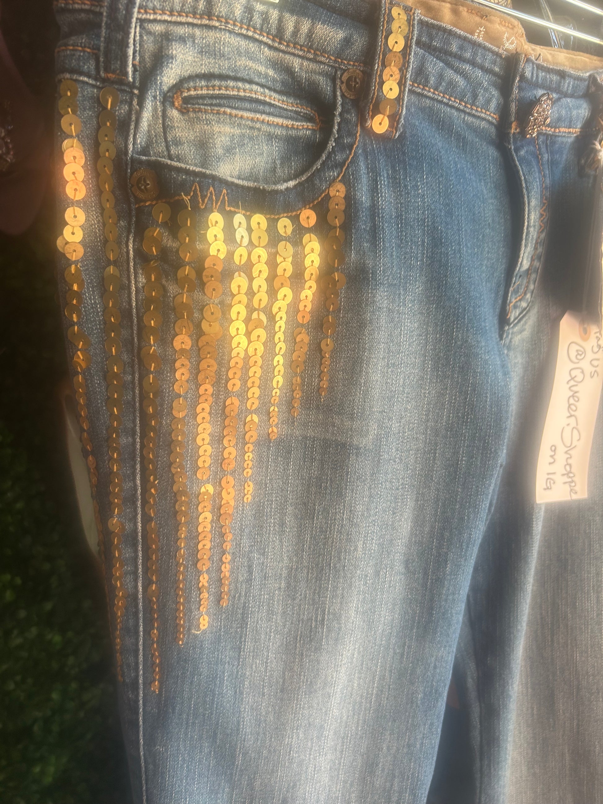 Industrial Cotton Butterfly Sequin Low Rise Flare Y2K Denim