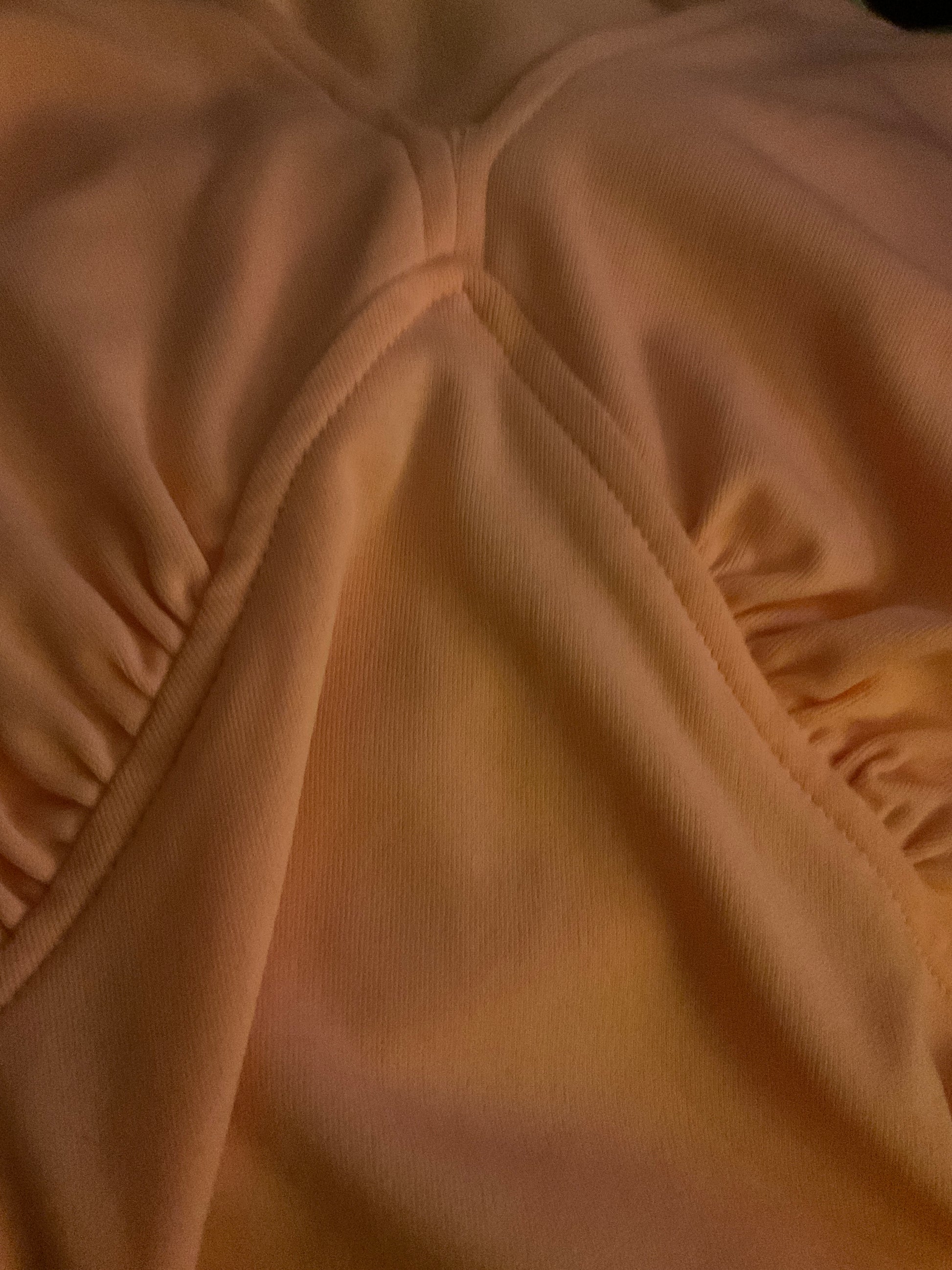 Price reflects small mid-bust (at the V of the neckline) snag similar to how panty hoes run.