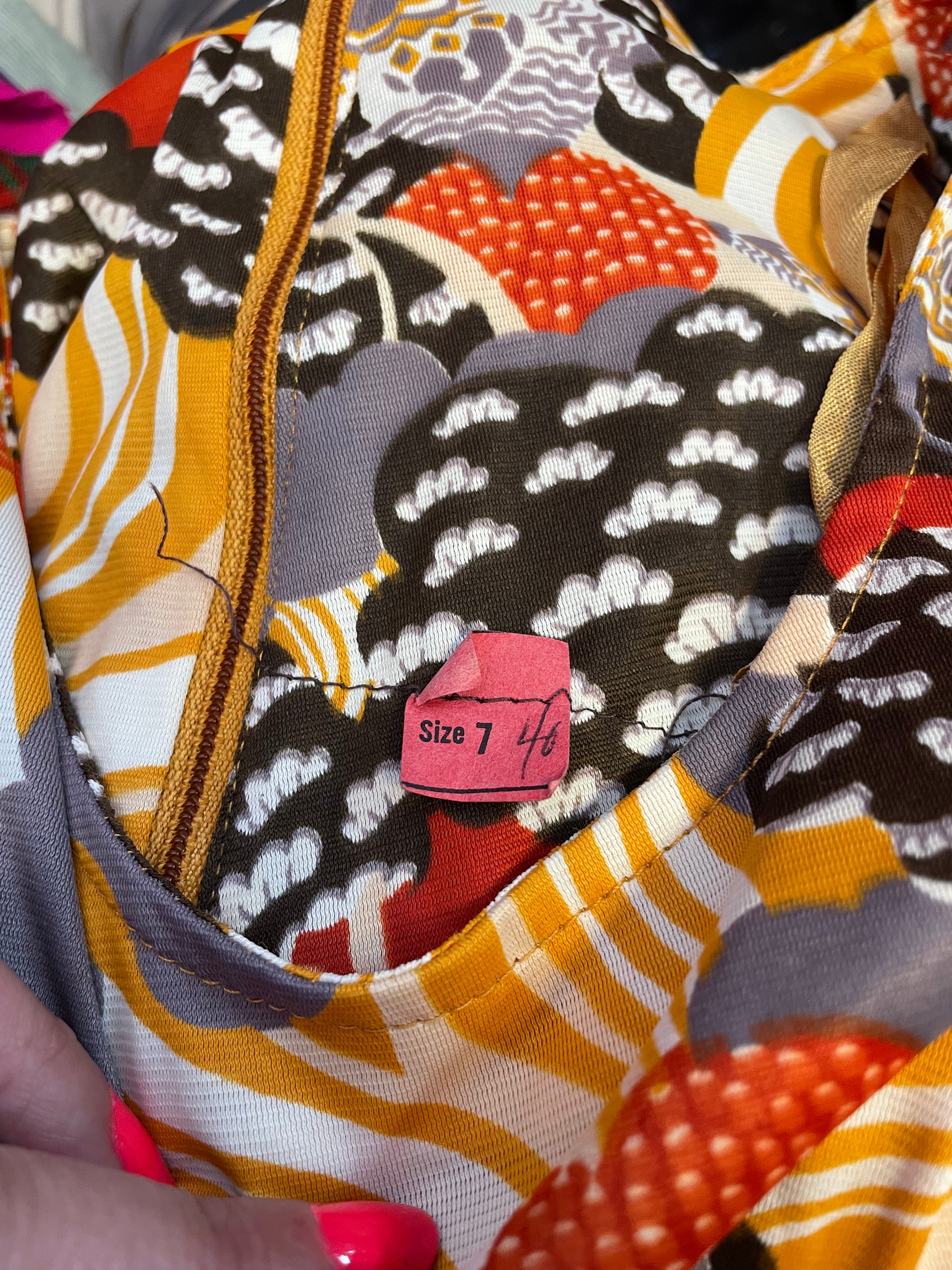 Psychedelic Mustard Browns Grey Micro Mini Size 7 60’s 70’s Dress