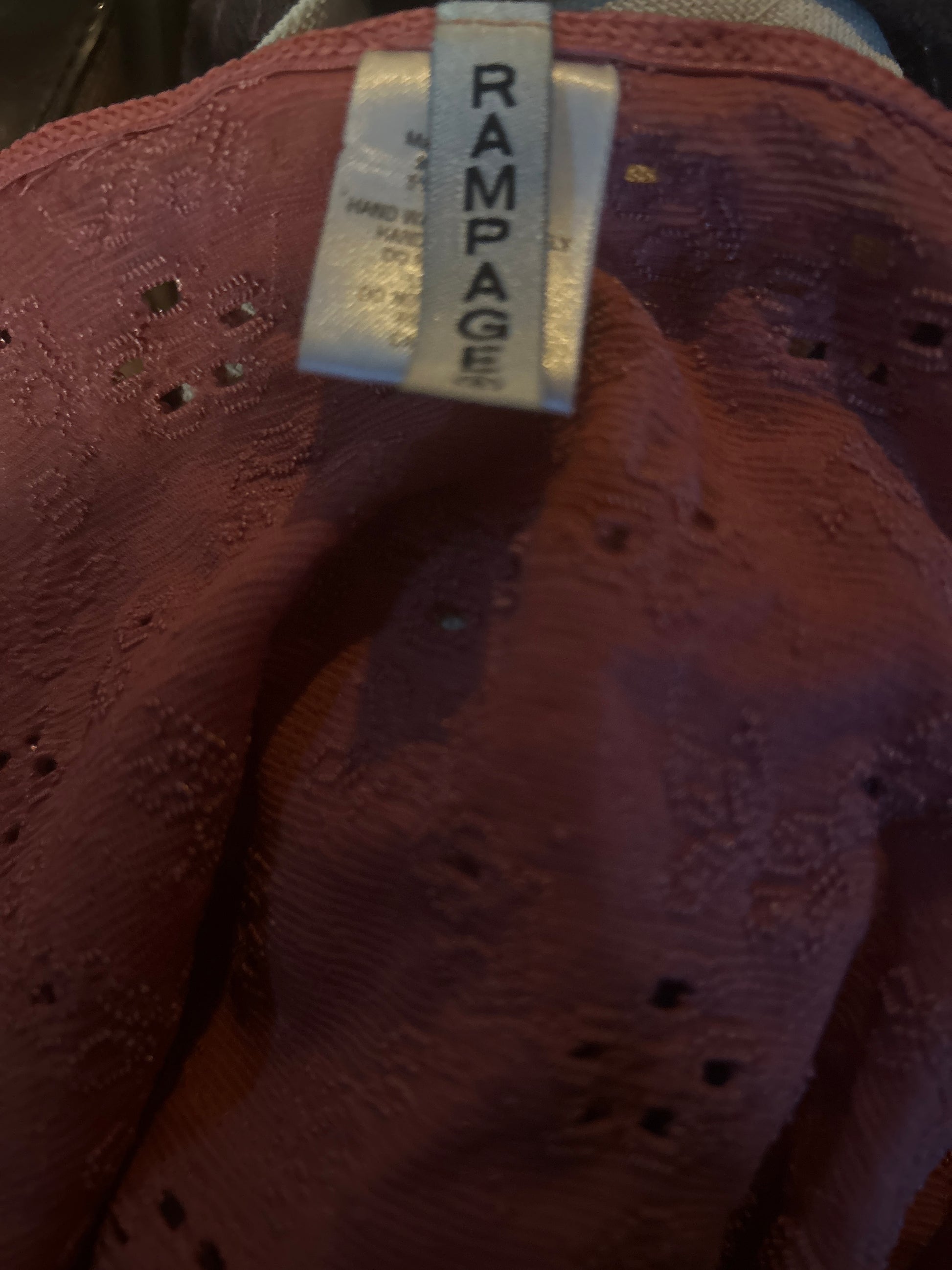Rampage Burnt Coral Eyelet Embroidered Y2K Spaghetti Strap Camisole with built in shelf bra