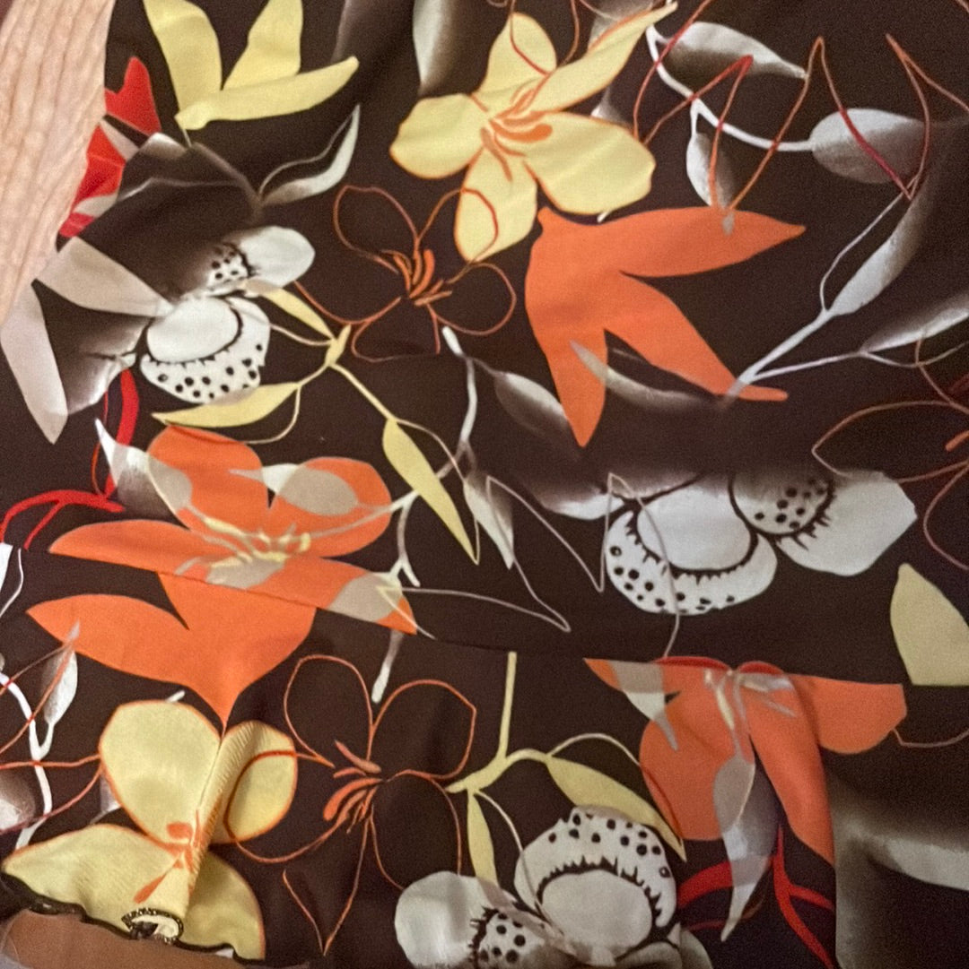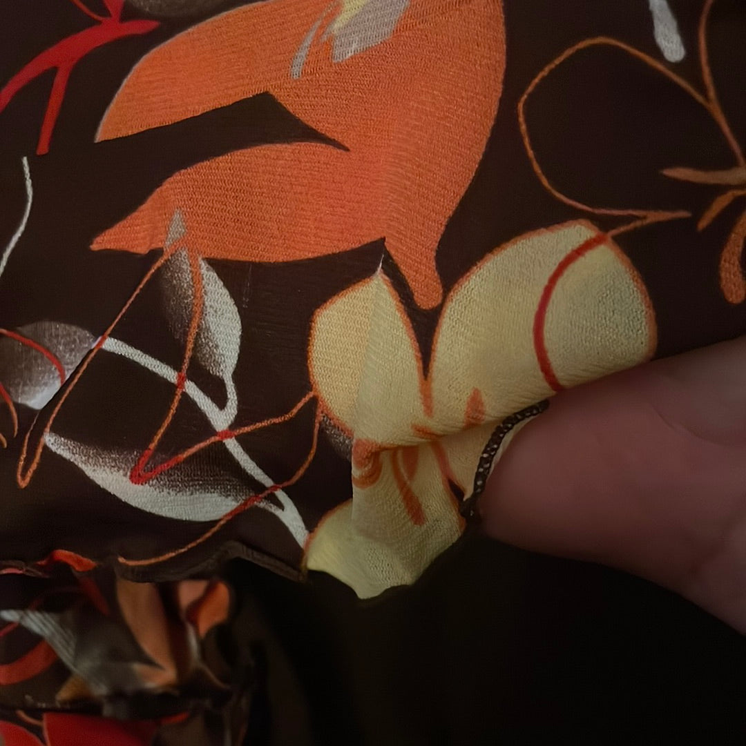 Rare Plus 90’s Lettuce Edge Mesh Browns Floral Midi Skirt with Ruffle Edge 2XL
