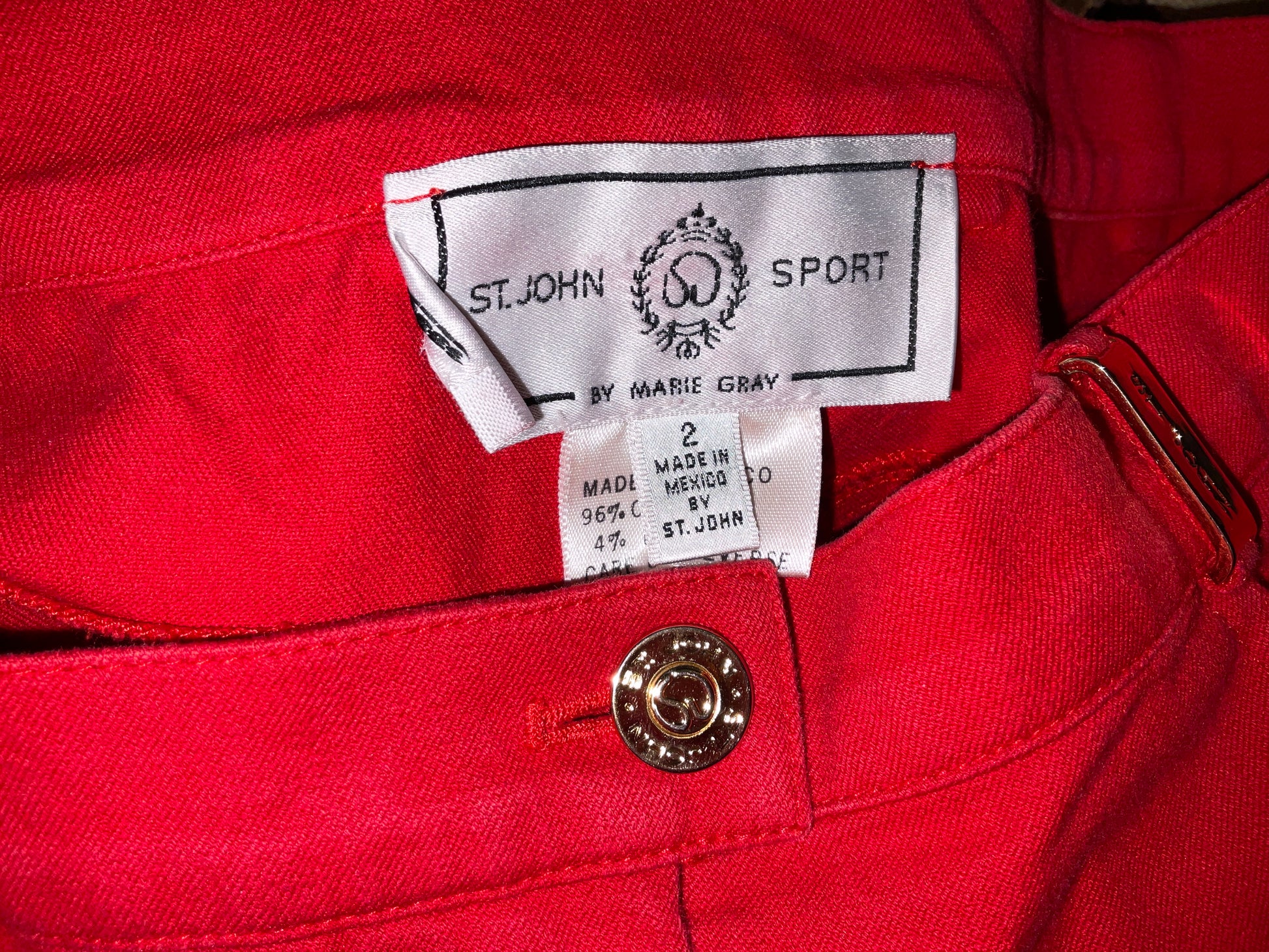 Tennis Padel Pickleball Country Club Red Gold Chunky Accents St John Sport Cigarette Pants Cotton Stretch Size 2