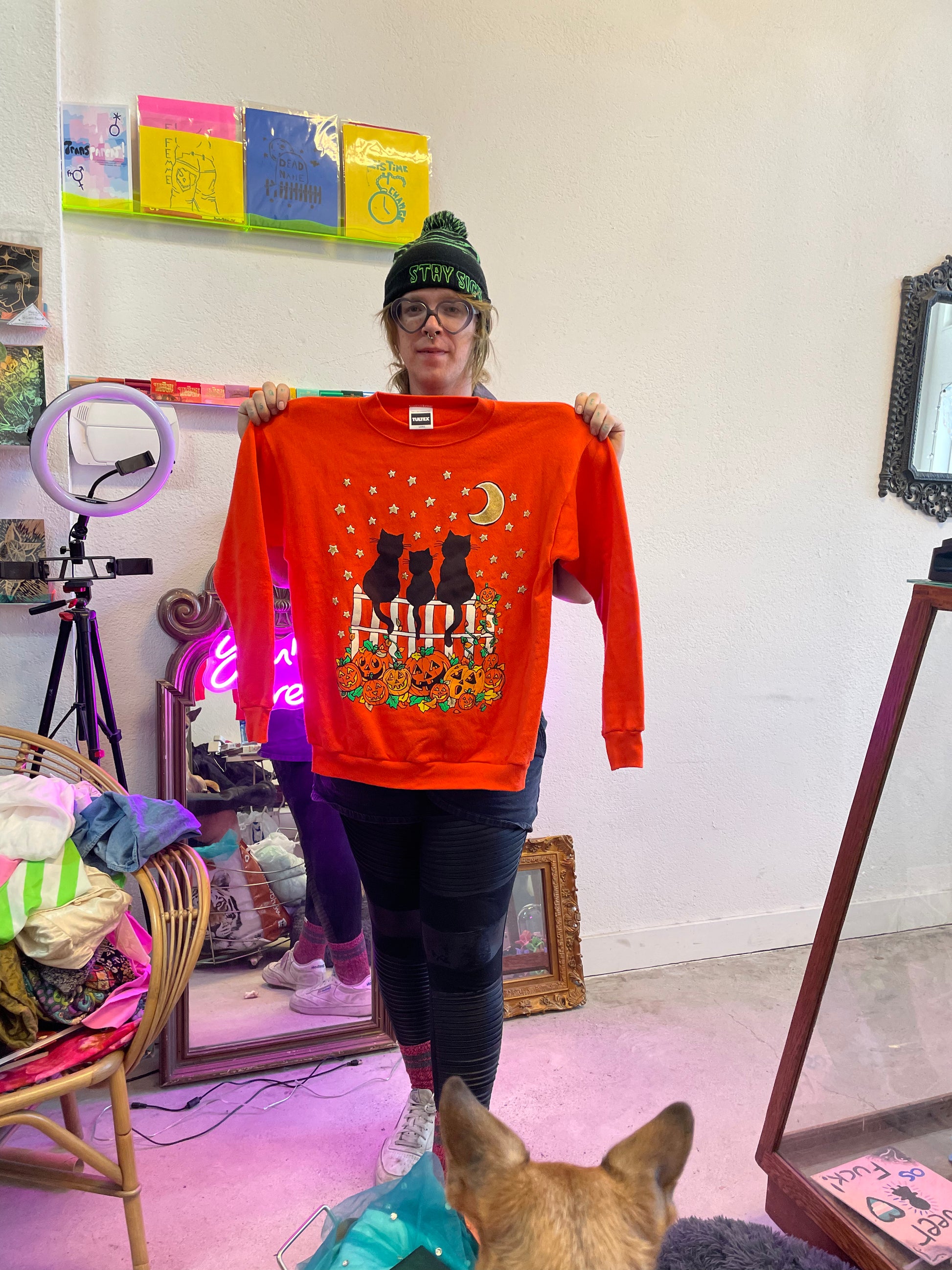 the “hanger” in the photo is my amazing partner Pearl, the photo with her saying “goodbye” to the garment makes me so happy.