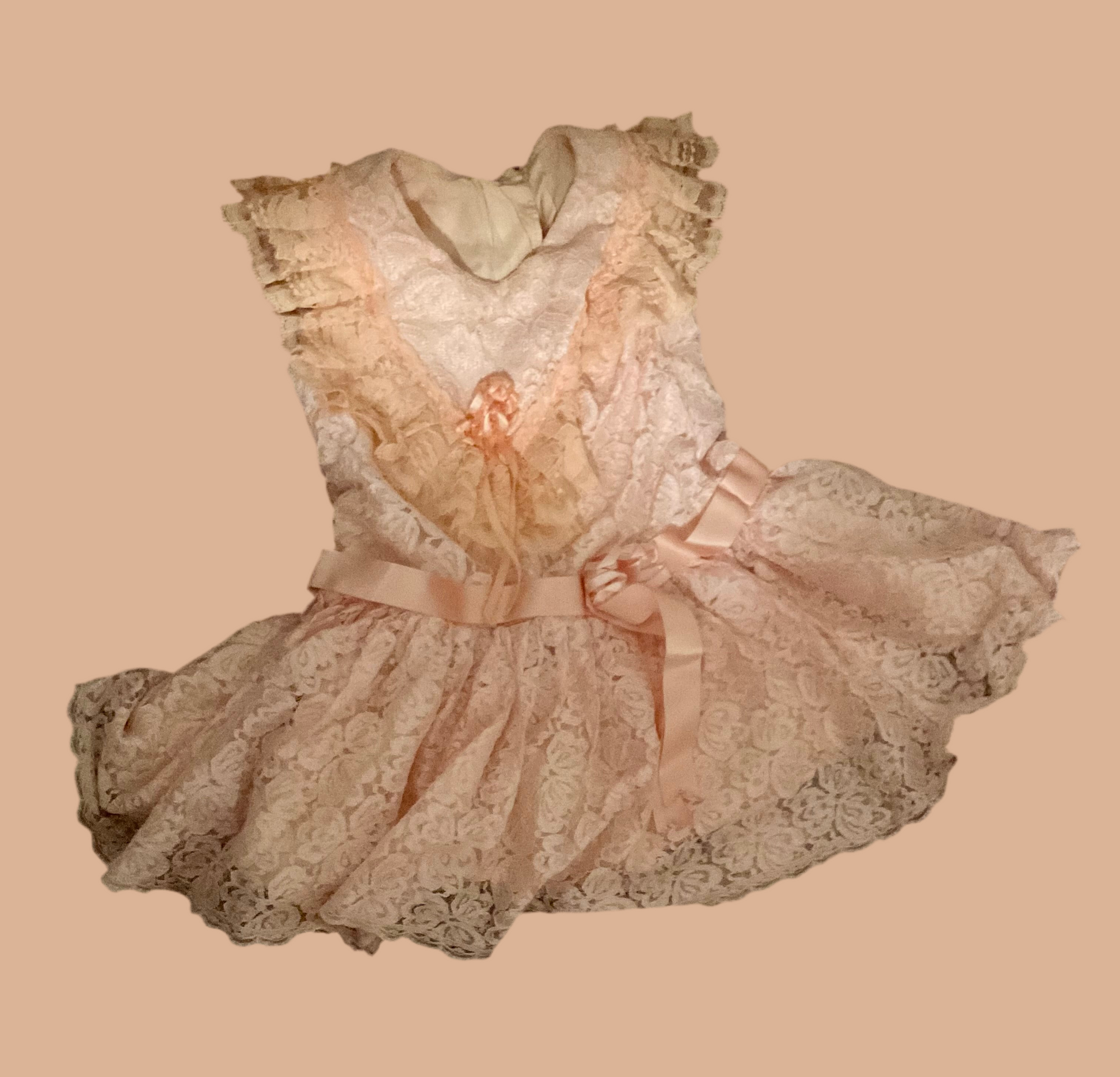 Peach Baby Toddler Victorian Dropwaist 18-24 Months Silk and Lace and Ribbon Occasion Dress Perfect for a Christening, Baby Naming, Flower Girl or Portraits