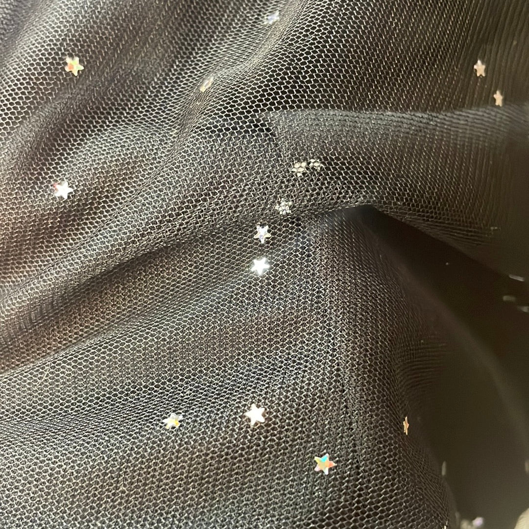 star glitter on mesh overlay on the skirt is HOLOGRAPHIC
