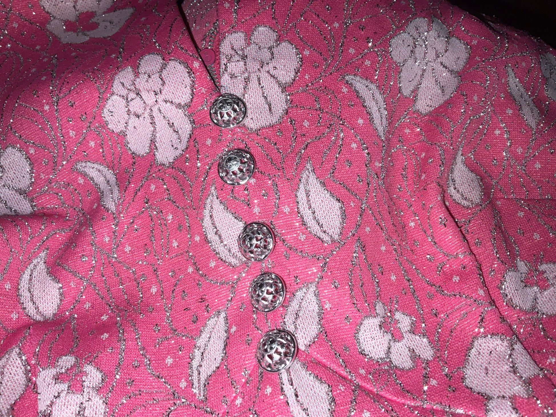 1960’s MidSize PLUS Volup Neon Pink and Silver Brocade Mini Dress Size 14/16