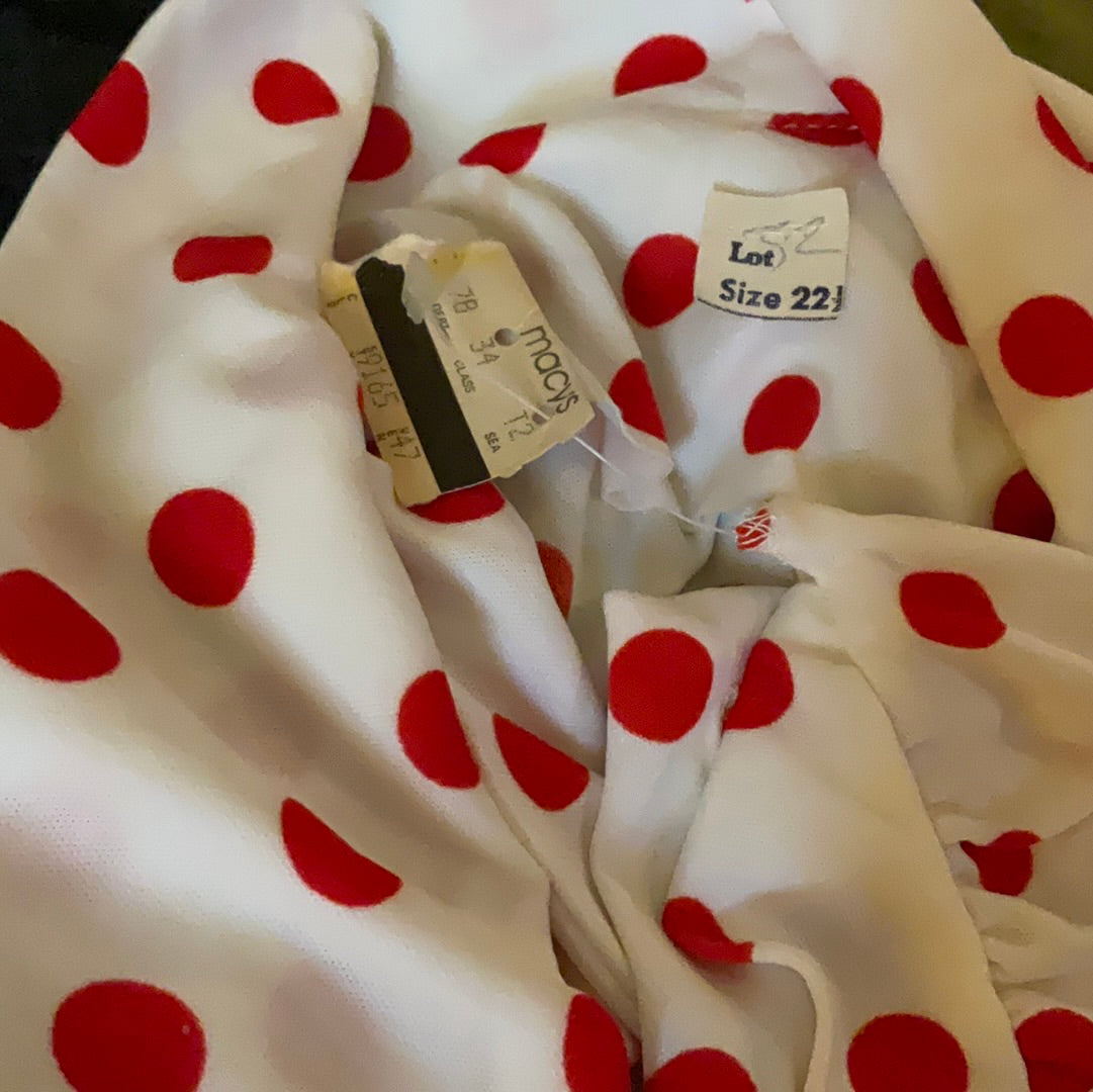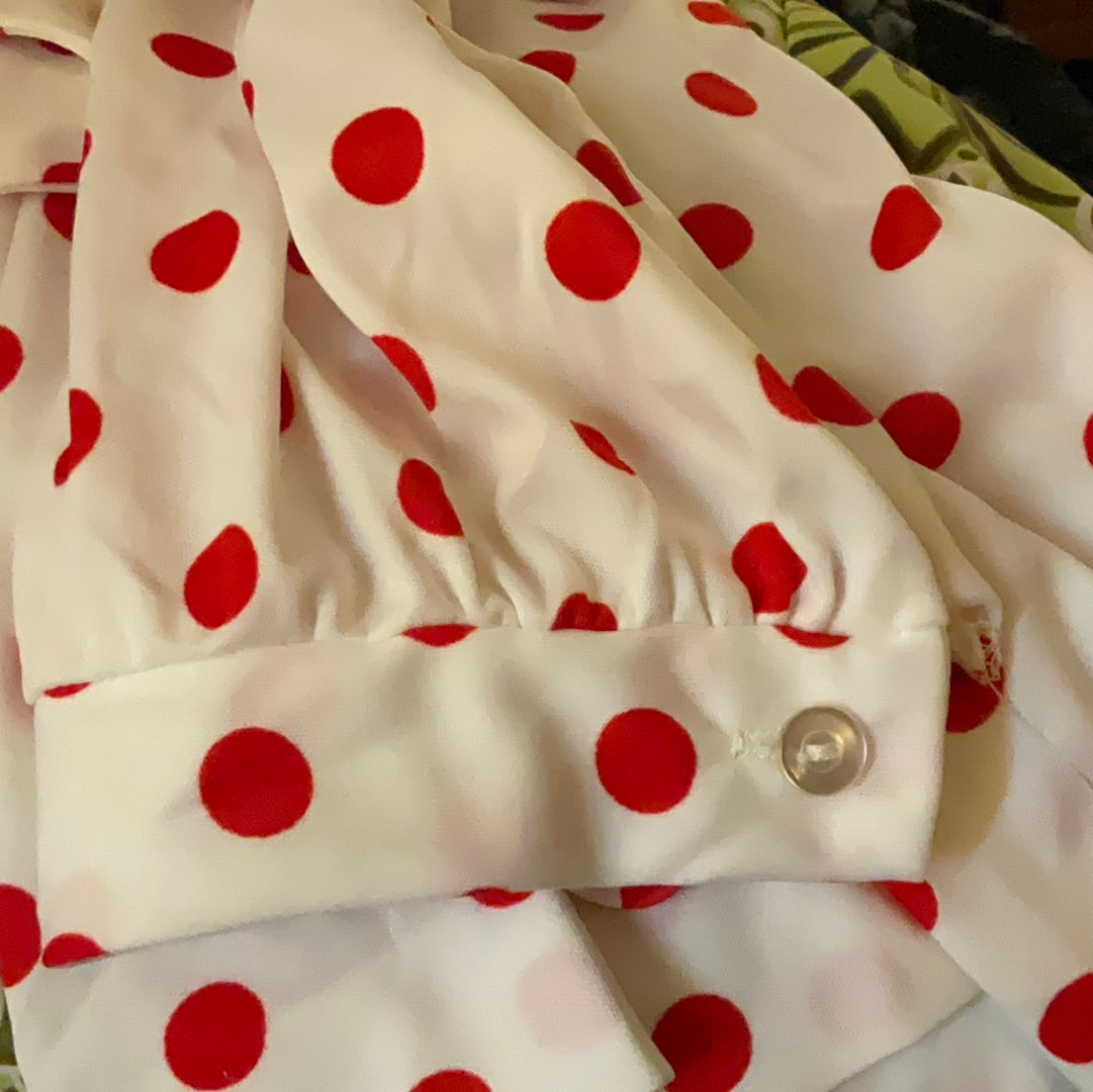 70’s White with Red Polka Dots PussyBow Secretary Button Up Blouse Size 22