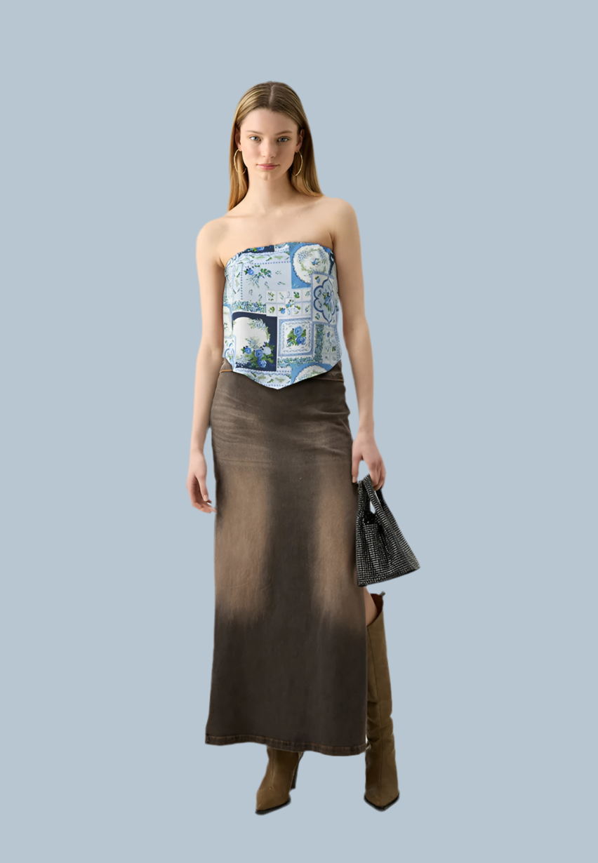 Abercrombie & Fitch STRAPLESS SCARF Top in blue tile colorway NWT