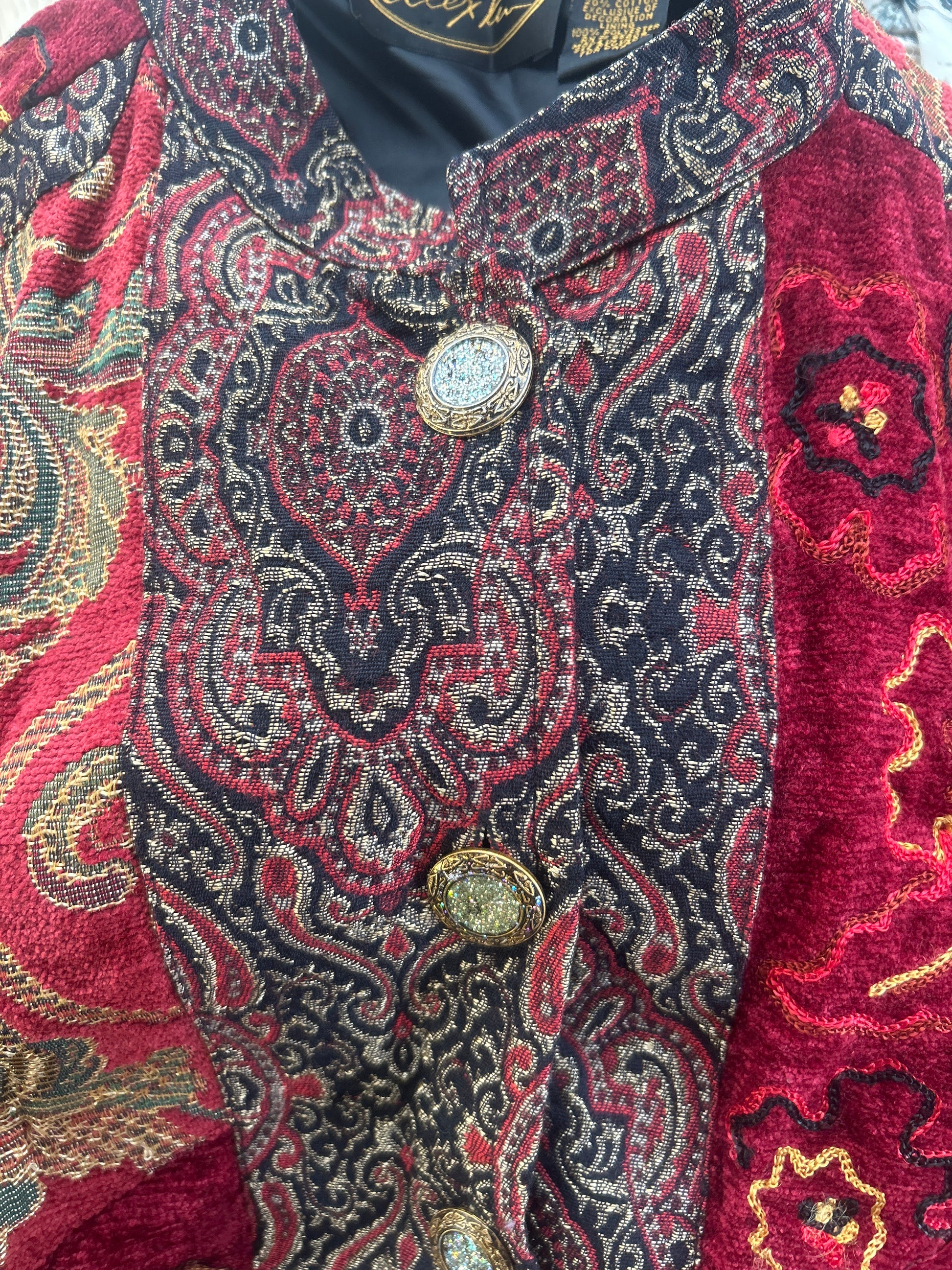 Alex Kim Reds Velvet Brocade Five Button Jacket Size Medium