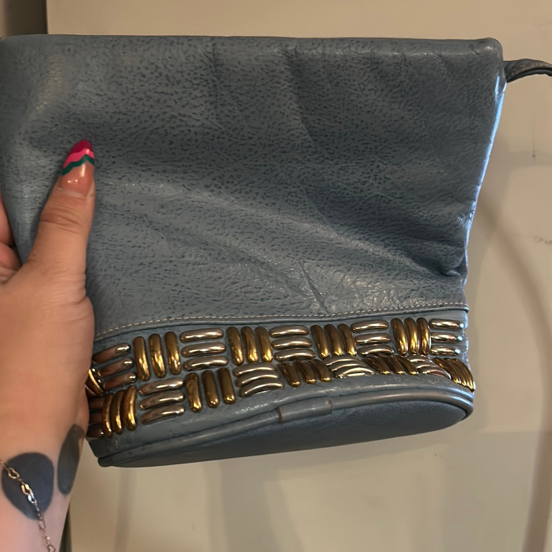 Atalla Handbags Vintage Baby Blue Leather Mini Bucket Bag Purse