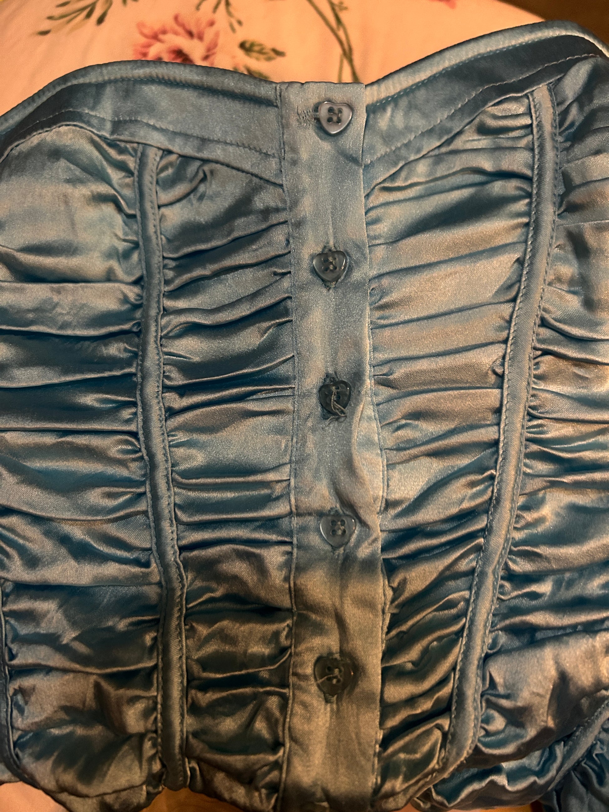 Baby Blue Silk bebe Corset Bustier with Heart Buttons