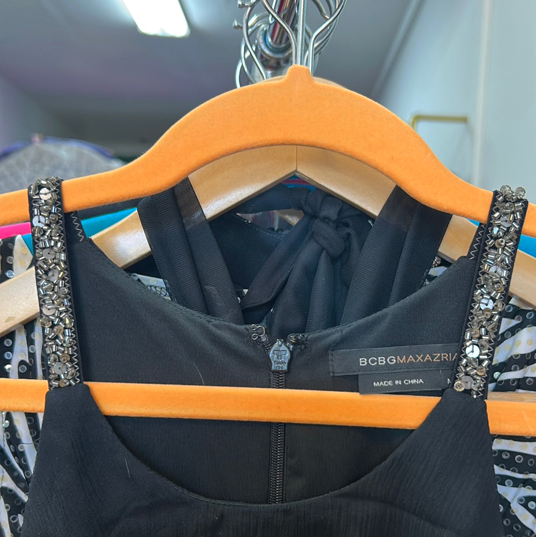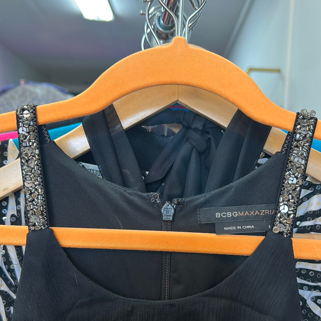 BCBG Max Azria Y2k 2000’s Ruffle Tiered Silk Black Mini Dress