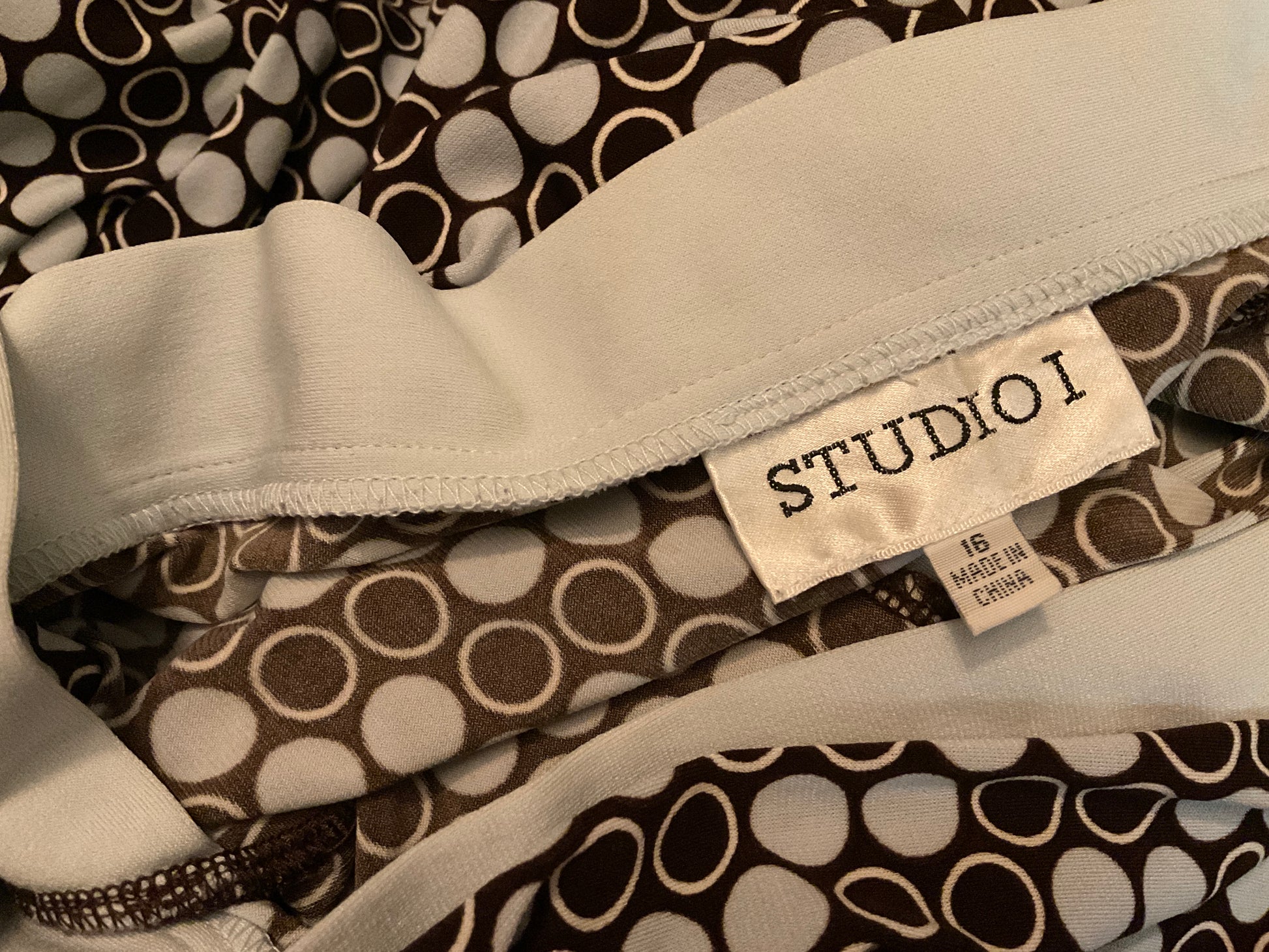 Circa ‘99 Geometric Circles Baby Blue and Brown Front and Back V Neck Midi Dress