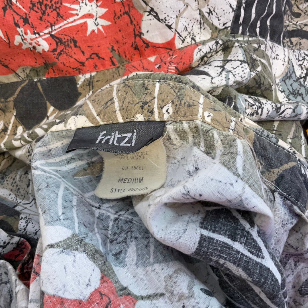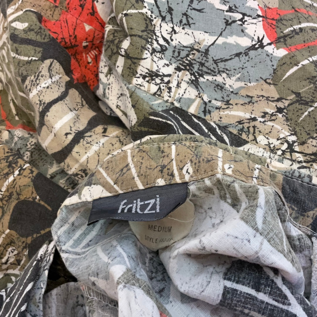 Fritzi Medium Neutrals abstract Floral Button Up Short Sleeved 100% Cotton Shirt