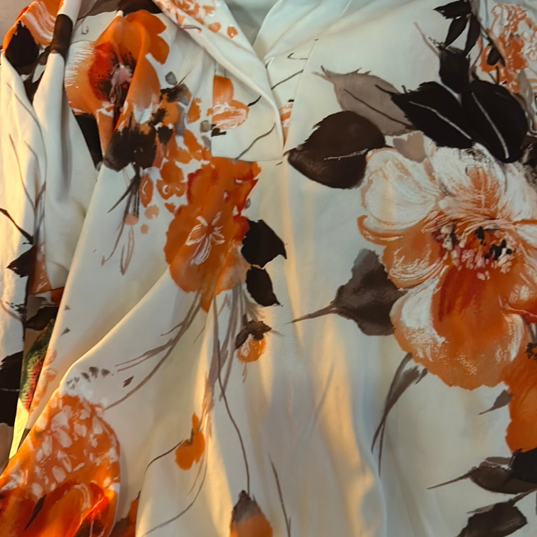 Lady Winn by Teddi of California Orange Roses Arrow Collar 70’s V-Neck Long Sleeve Shirt