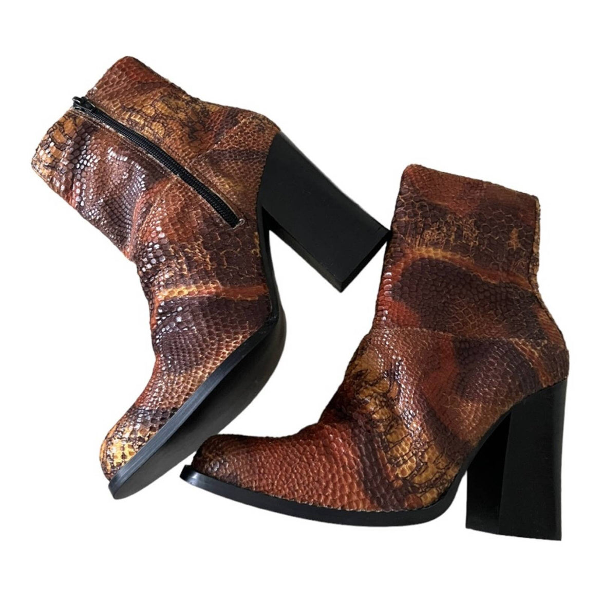 Mainstays Browns Vintage Velvet Printed Snakeskin Y2K Heeled Boots Size 7.5