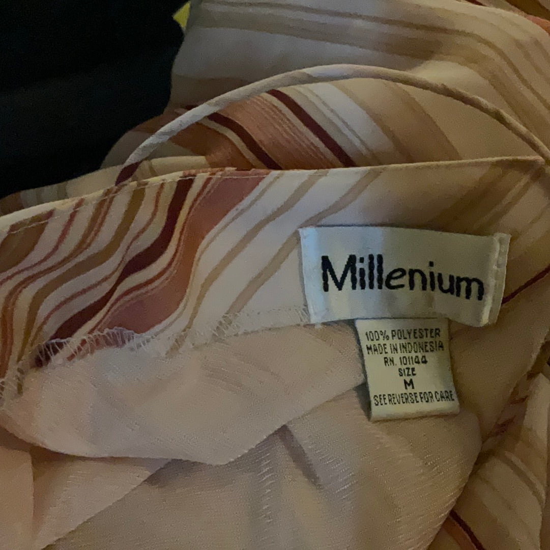 “Millenium” Size Medium Asymmetrical Bias-Cut Midi Spring 90’s Y2K Striped Neutrals and Red Dress