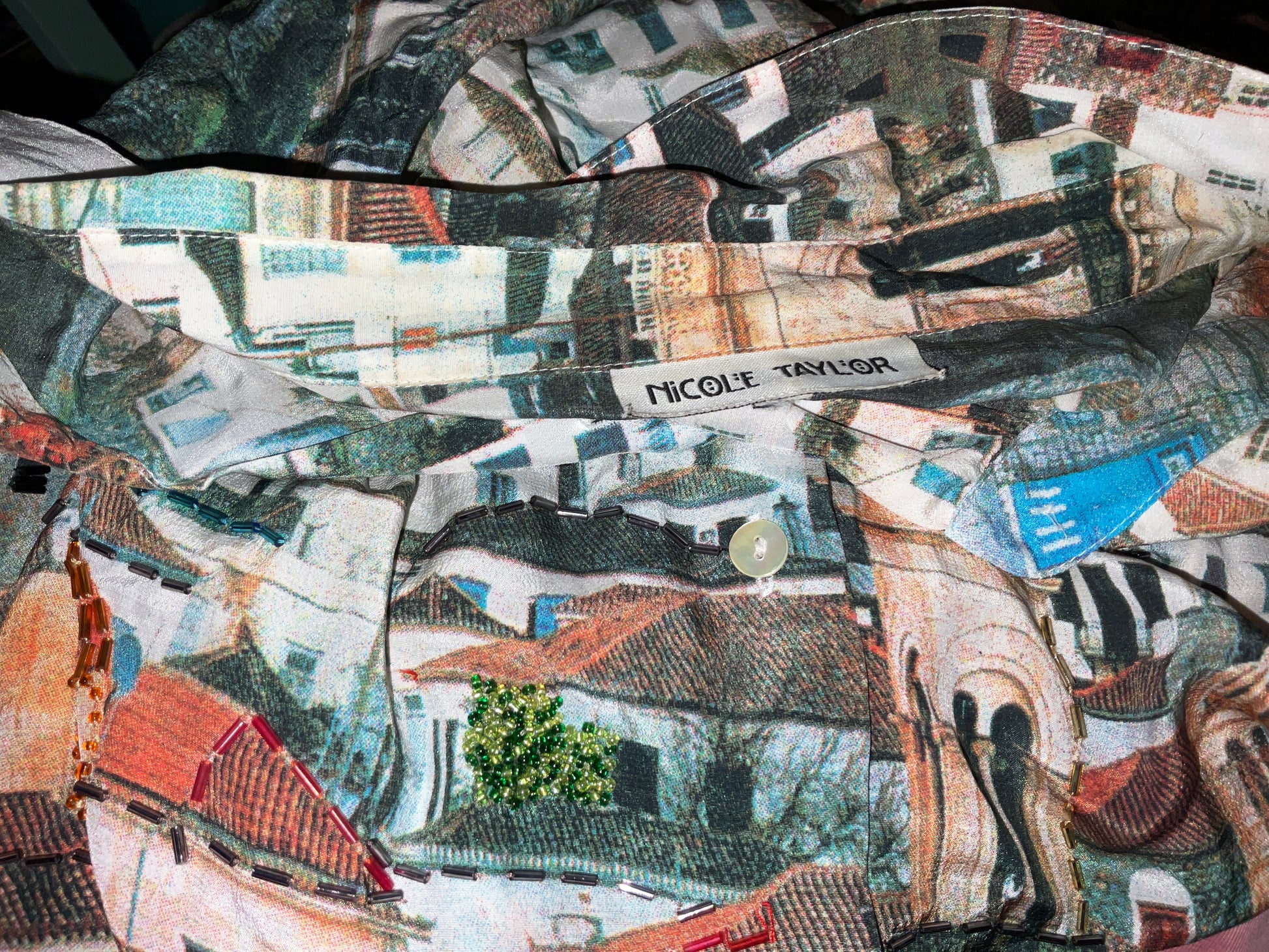 Nicole Taylor Beaded Silk Boats and Houses Scenic Button Up Shirt Size 1X