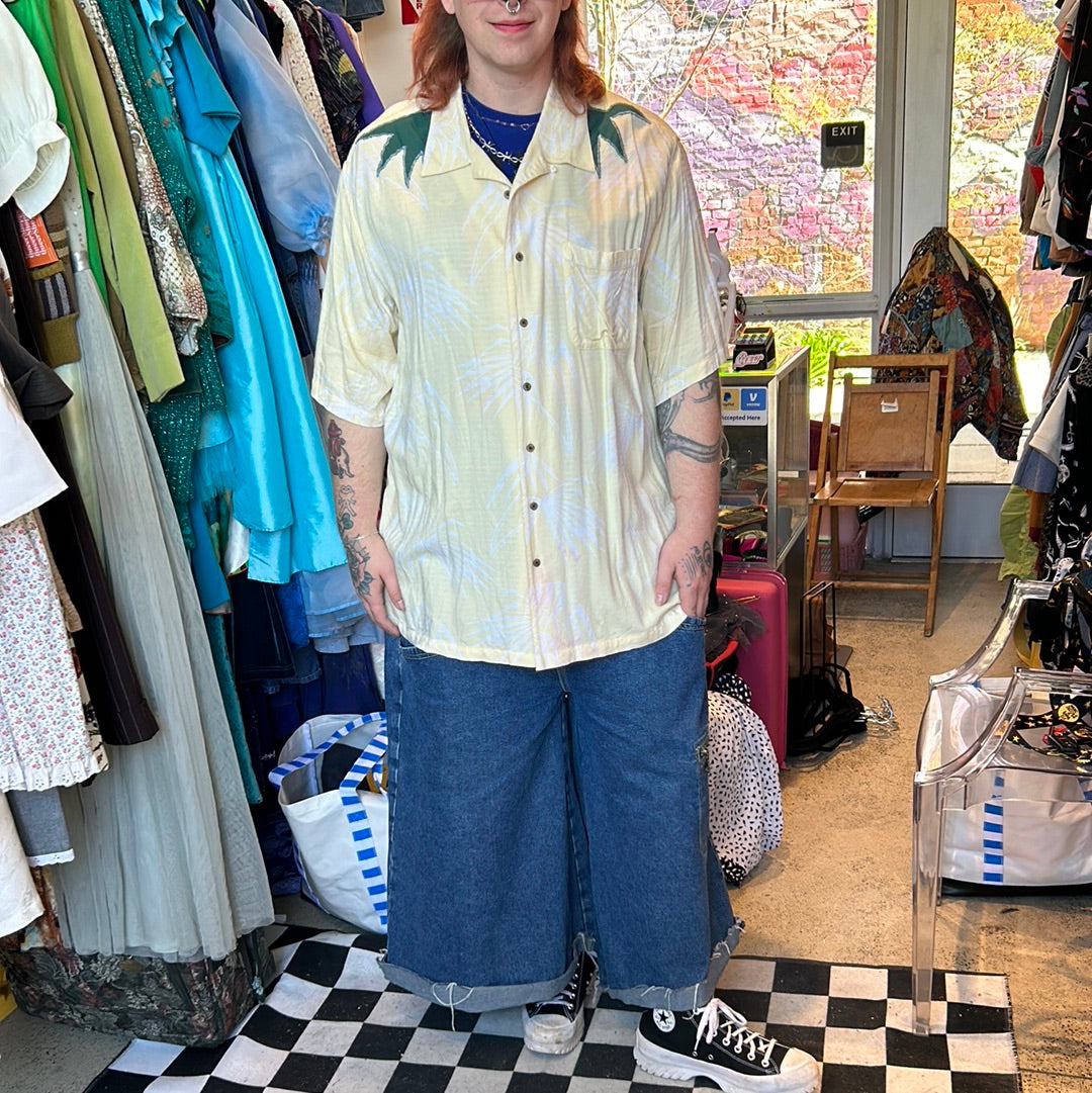 Pass the Dutchie Handmade Upcycled Short Sleeve Cotton Button Up Shirt