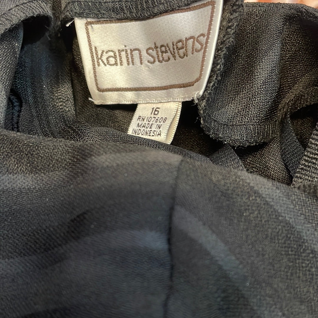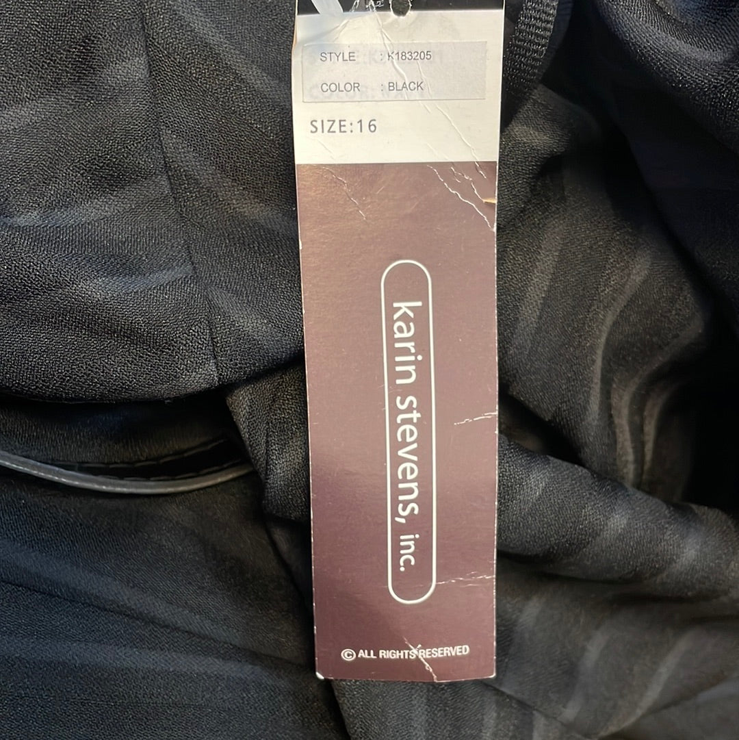 Plus Vintage Karin Stevens Size 16 Cap Sleeve All Black Brocade Pinstripe A-Line WednesdayAddams Dress