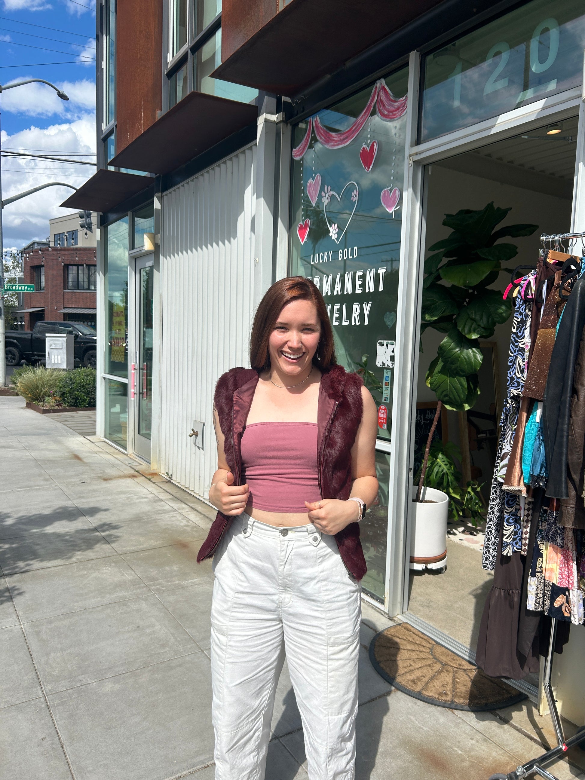 Shine NYC Maroon Rabbit Hooded Vest Size Medium