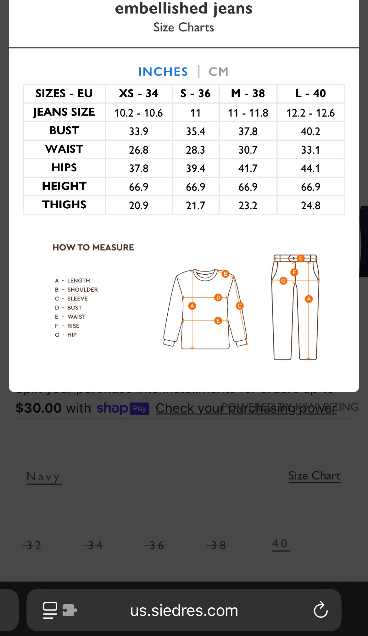 - Size chart included from their website