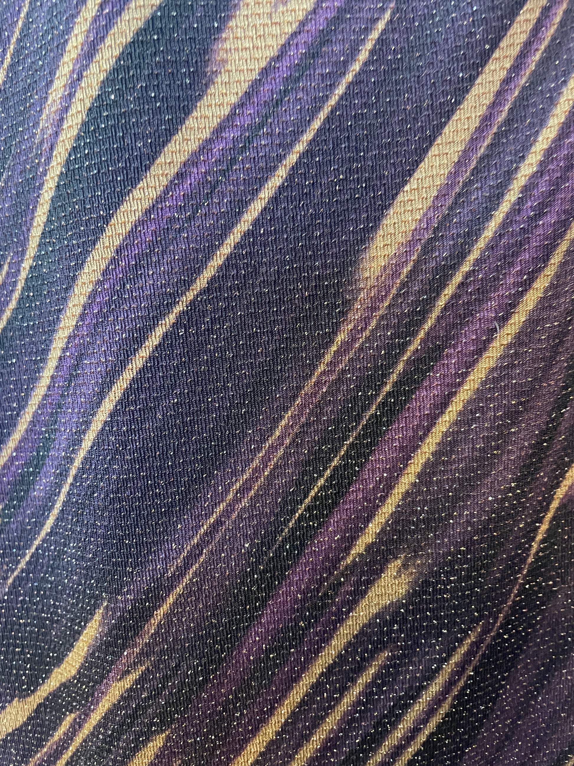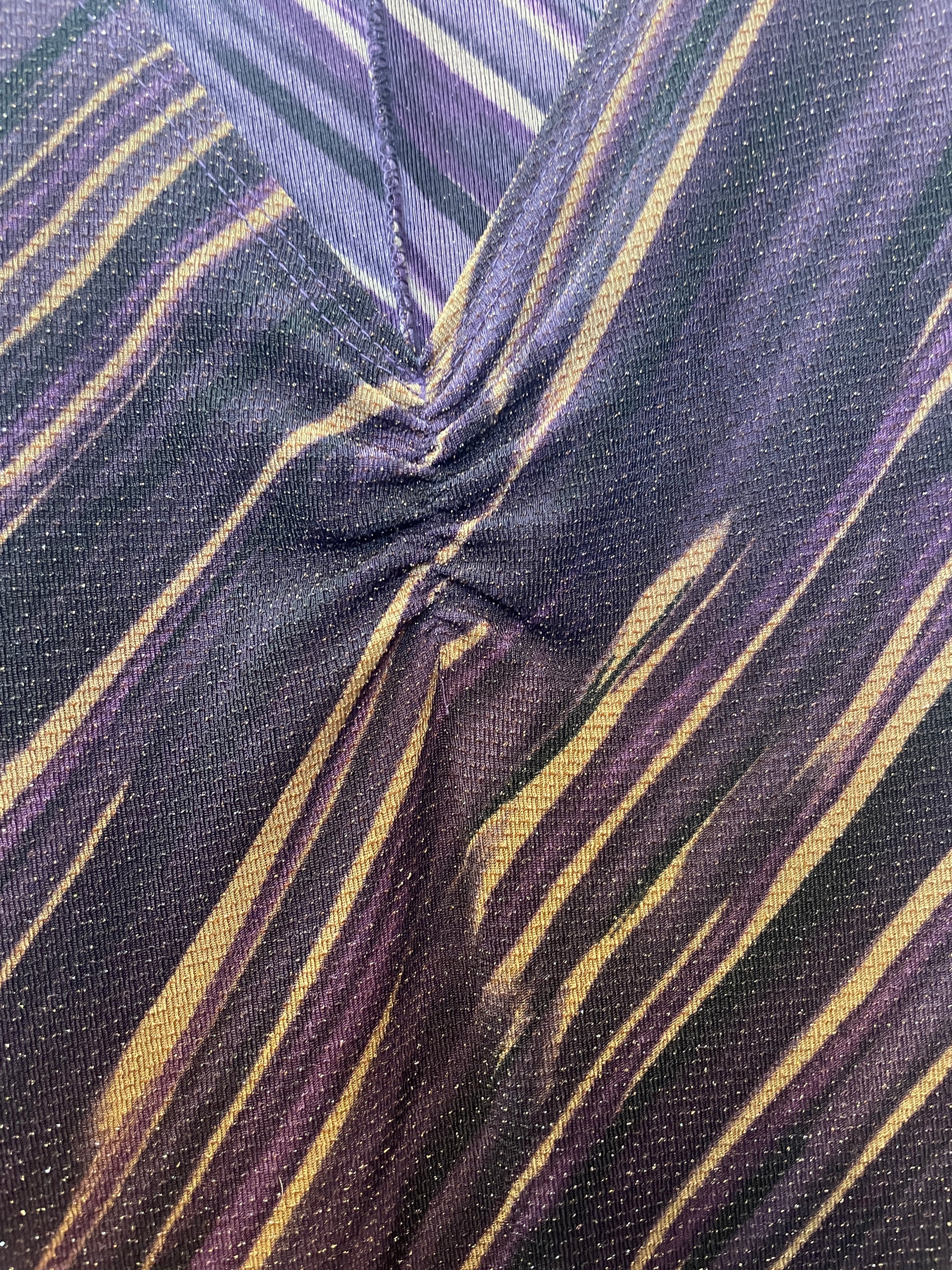 dress with Gold Lurex threads on an abstract stripe pattern and side slits on both sides