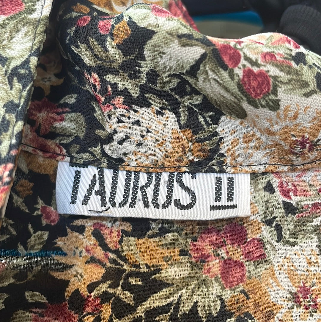 Dark Floral Collared Deep V Neck Long Sleeve Crop Tie Top