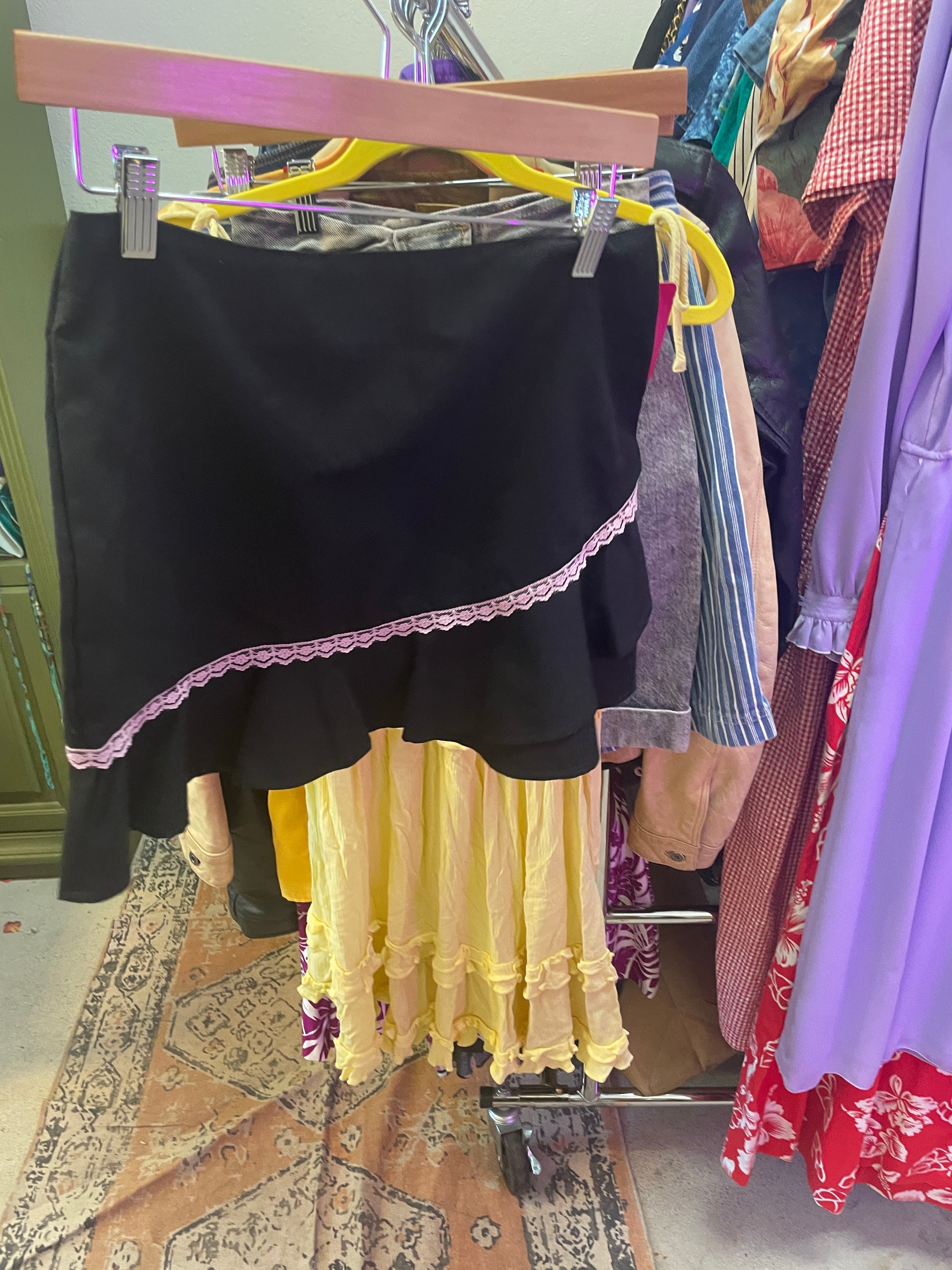 Deadstock 2001 Y2K Xhilaration Ruffle Asymmetrical Pink Lace Trim Low Rise Micro Mini Skirt