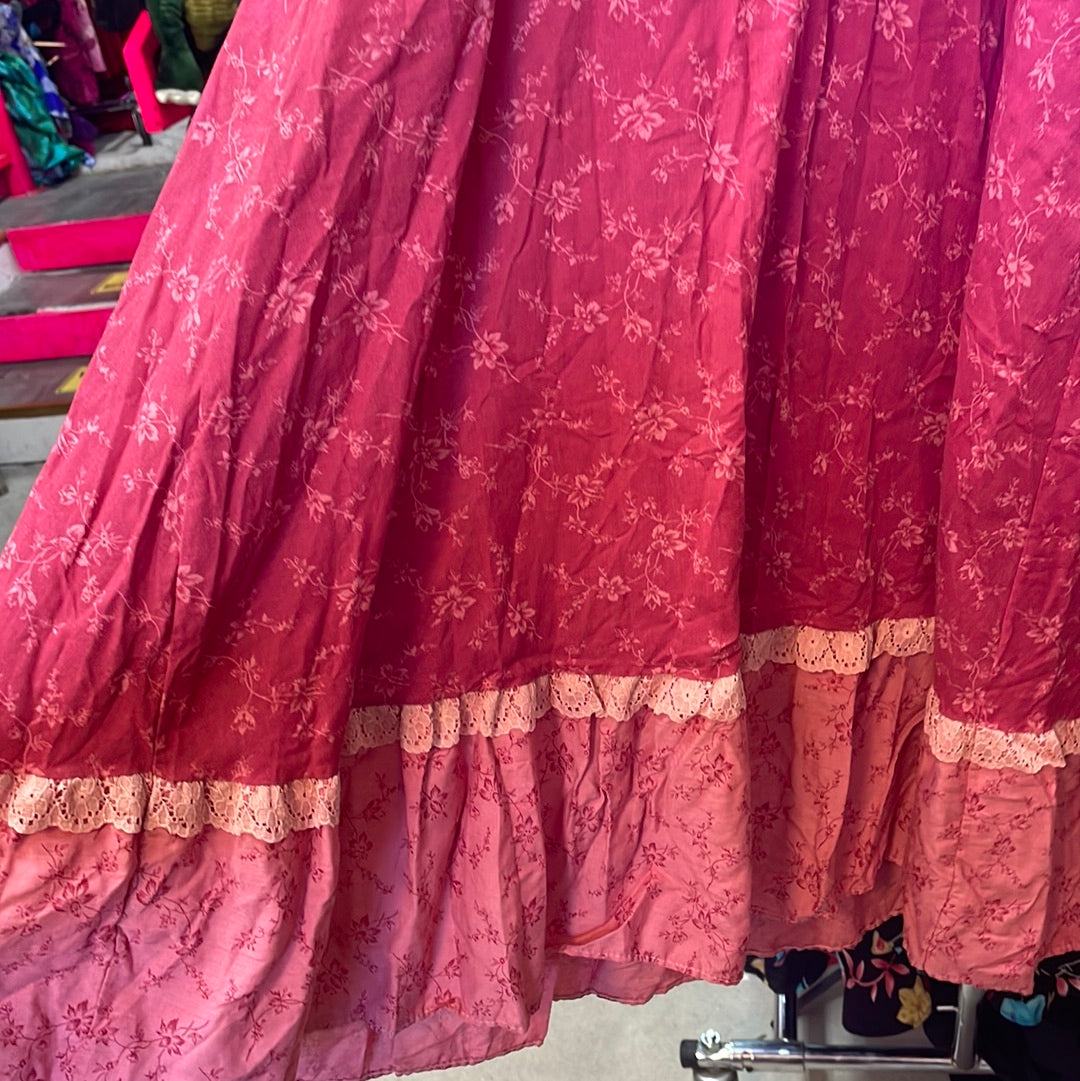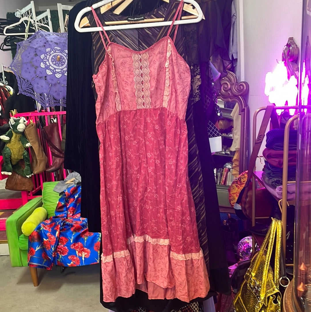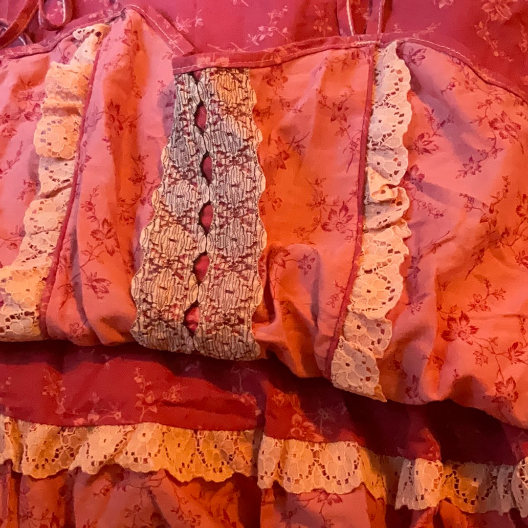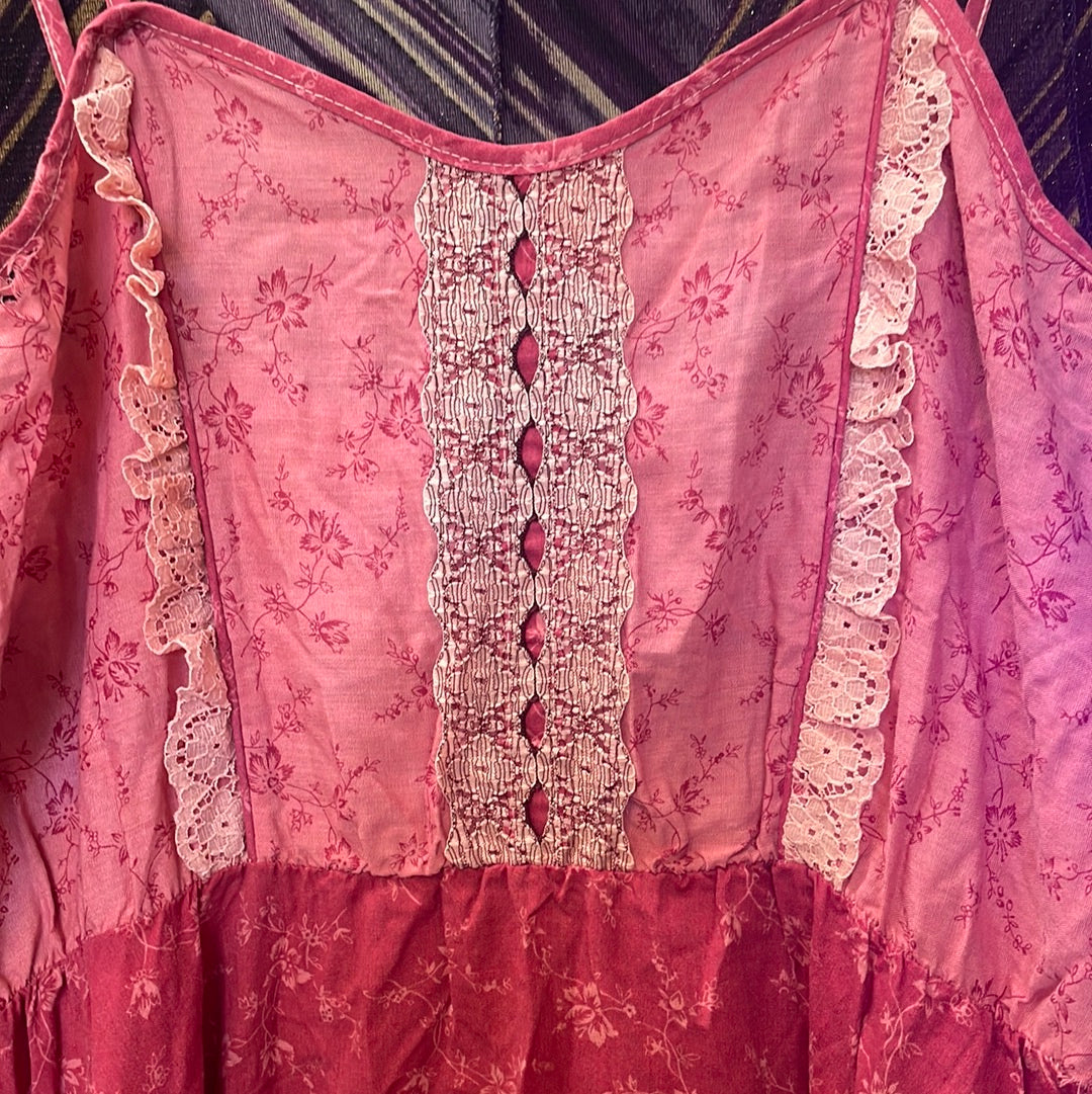 Pinks Fairycore Cottagecore Gunne 70’s does 90’s Lace and Ruffle on Cotton Coordinating Calico Cotton Midi Pinafore Dress