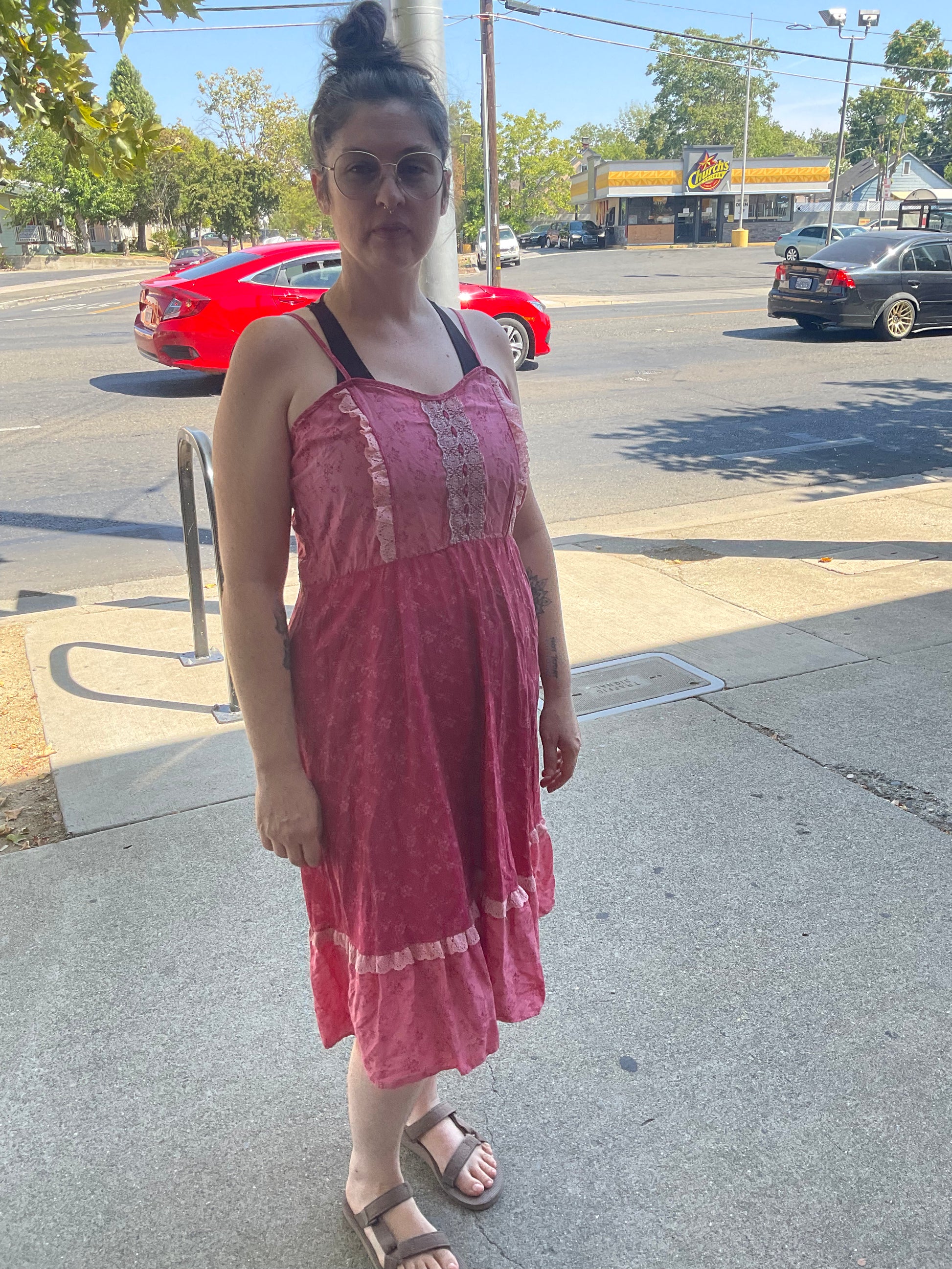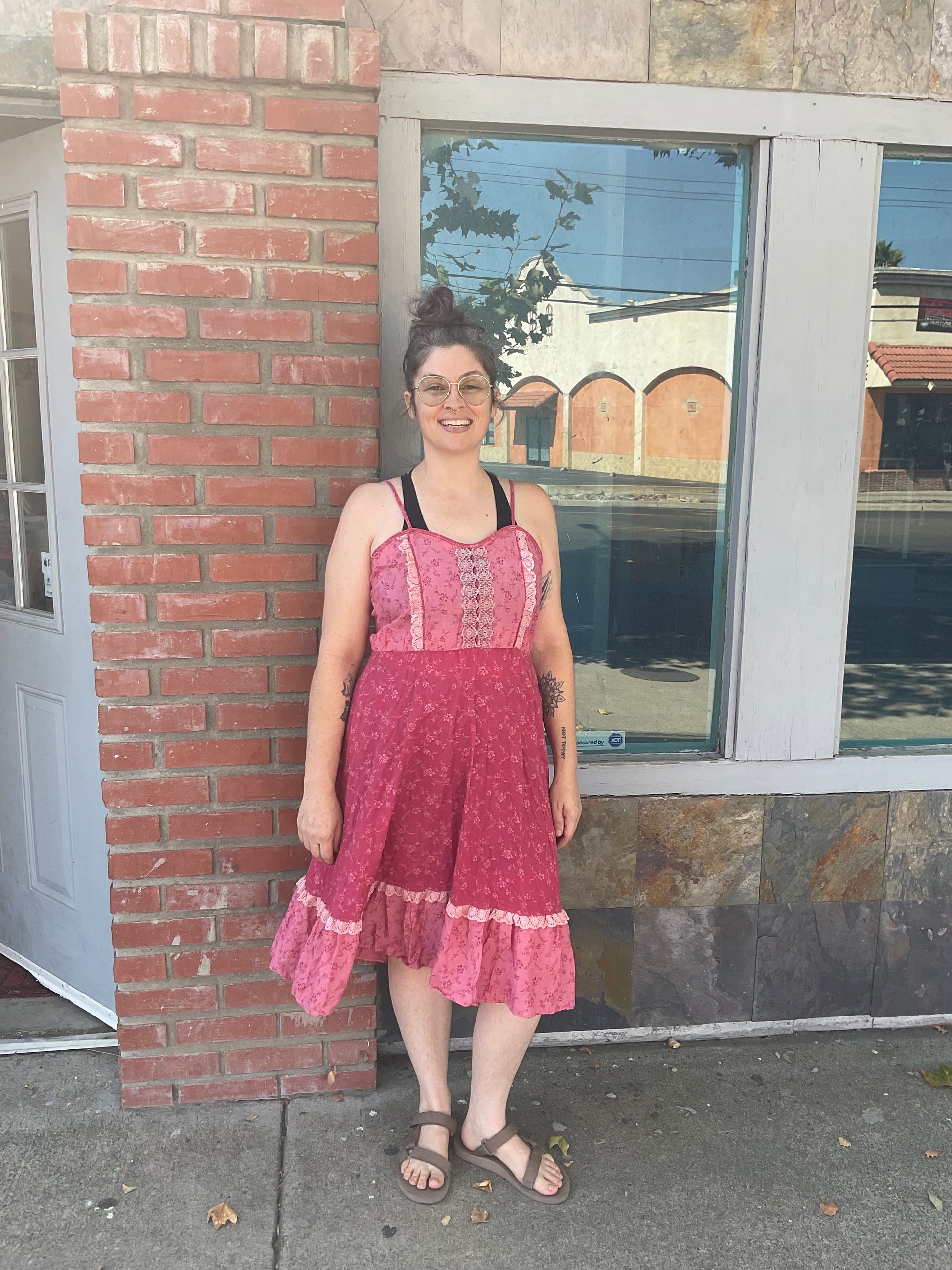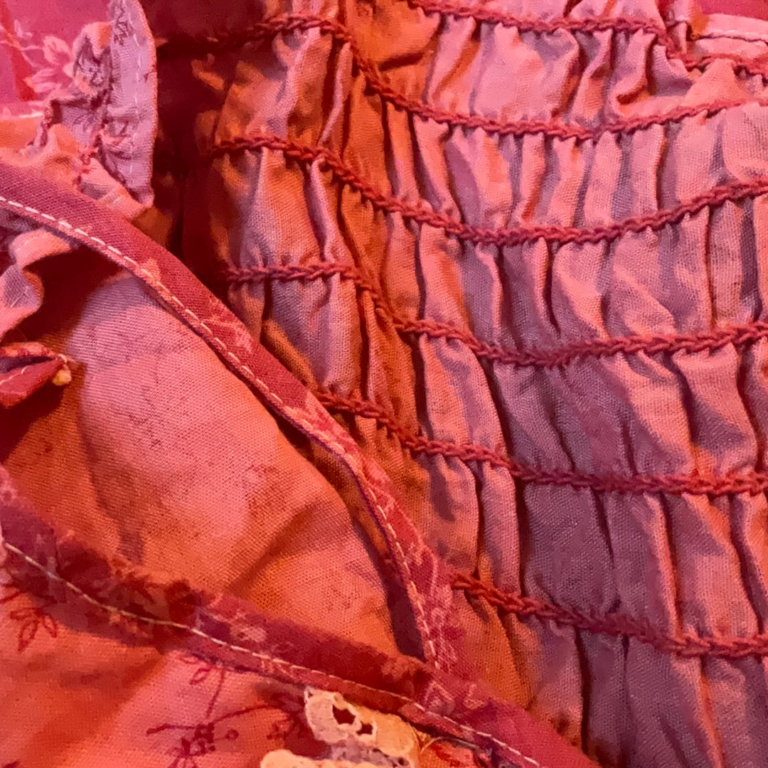 Pinks Fairycore Cottagecore Gunne 70’s does 90’s Lace and Ruffle on Cotton Coordinating Calico Cotton Midi Pinafore Dress