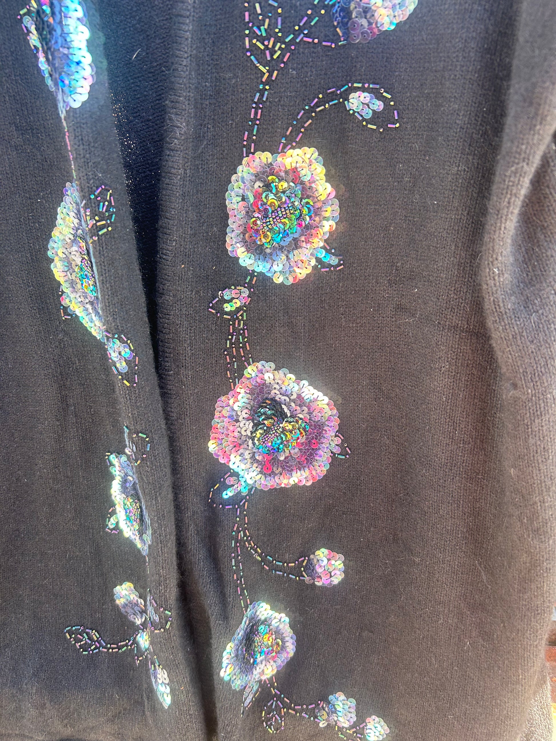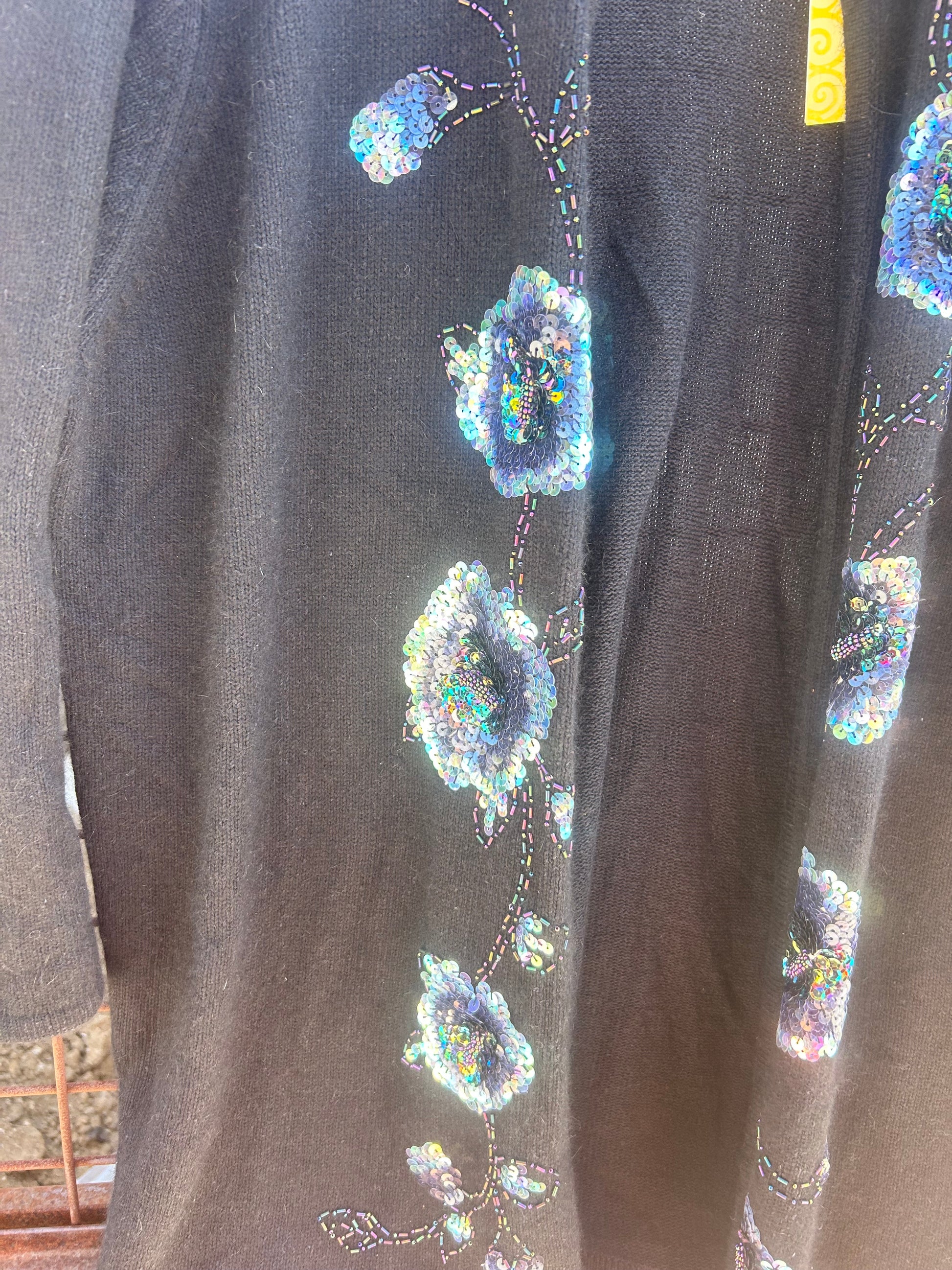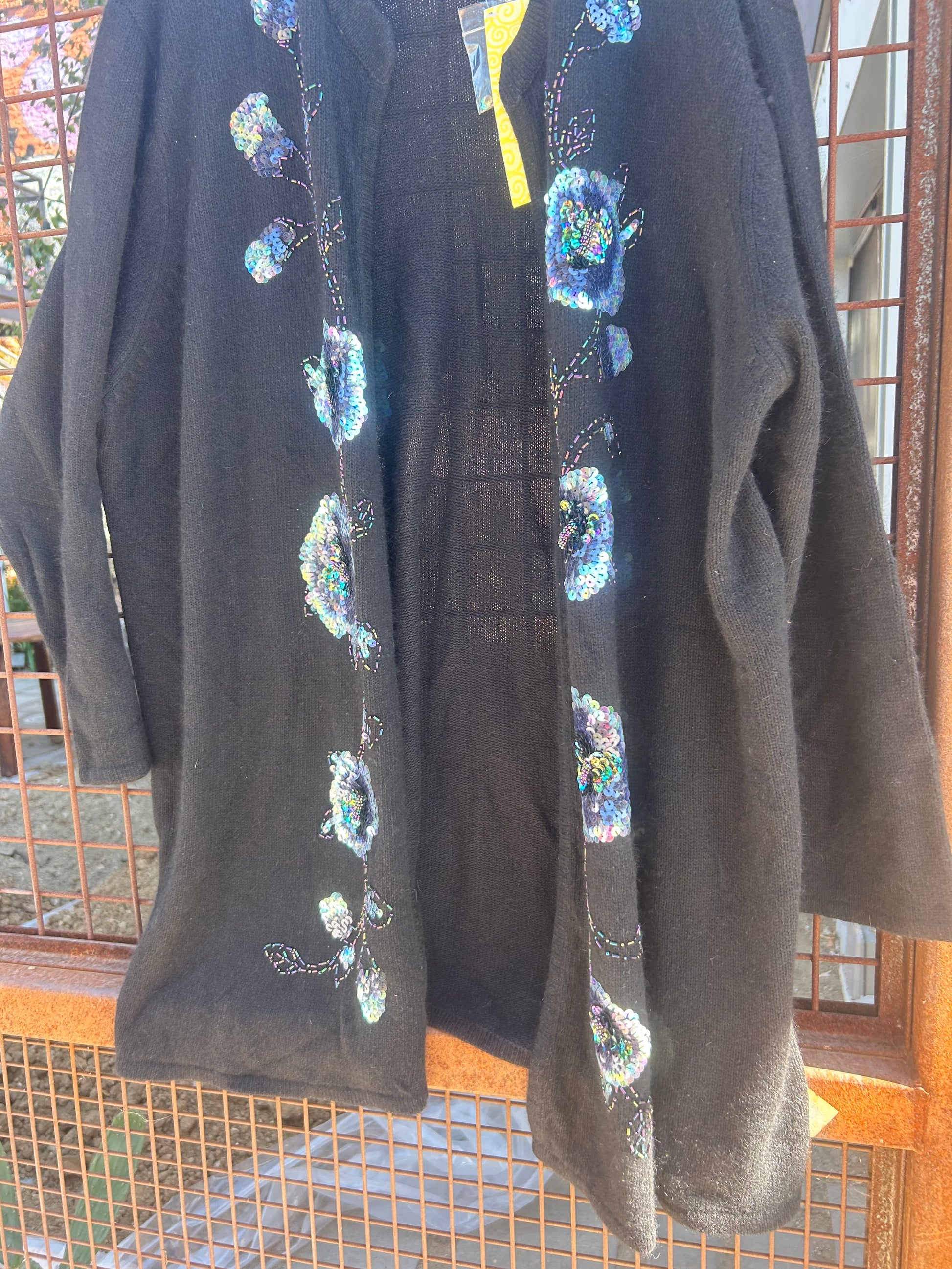 Victor Costa Sequin Floral Appliqué Open Cardigan 3XL NWT
