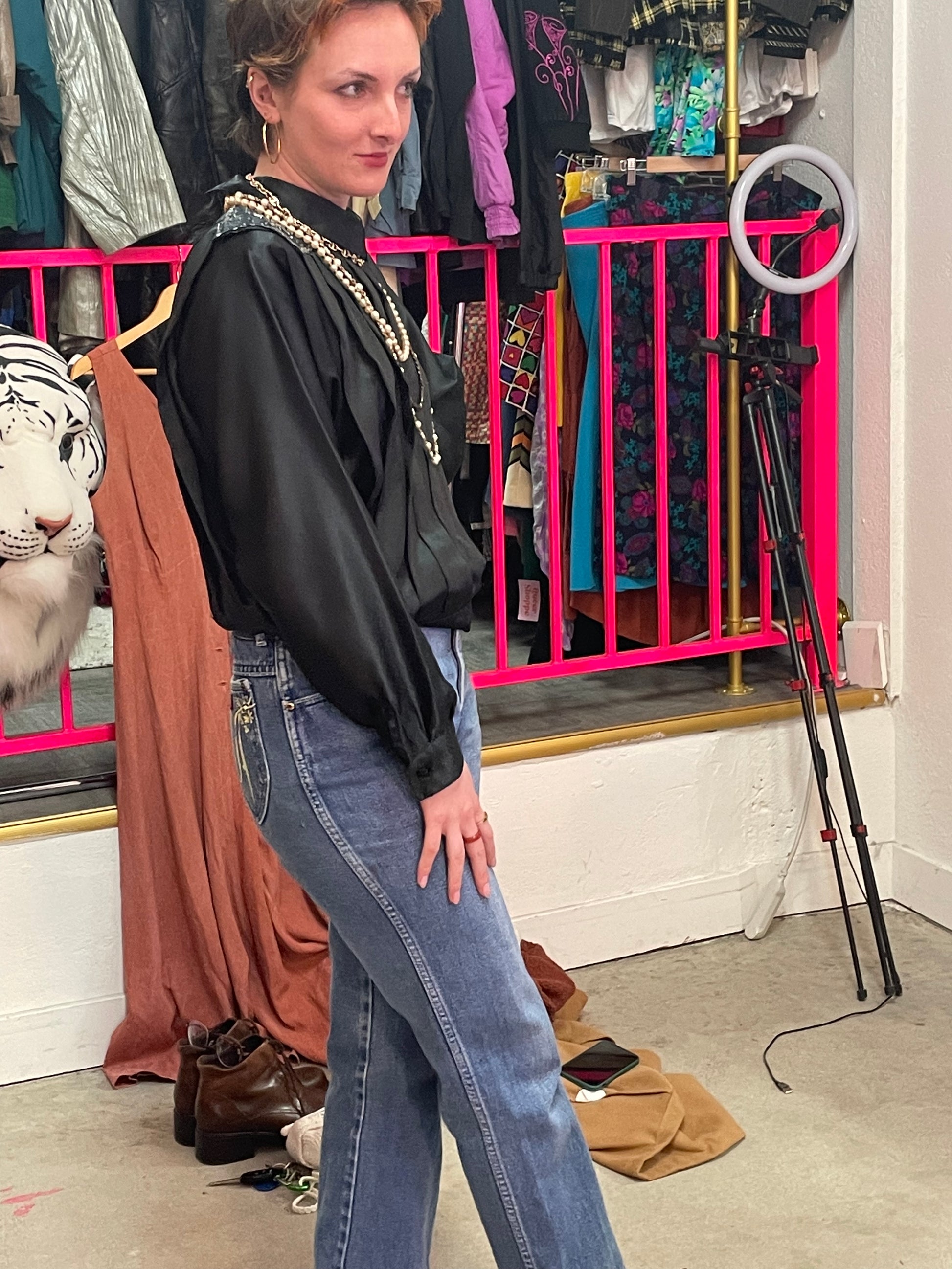 Vintage 1990’s Black Edwardian Style Silk Blouse