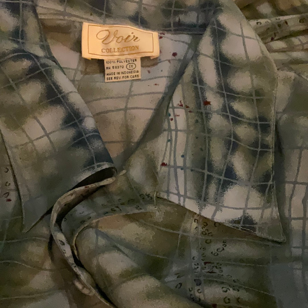 Voir Collection Vintage Two Piece Set Shirt and Skirt Blue Grey Abstract Print